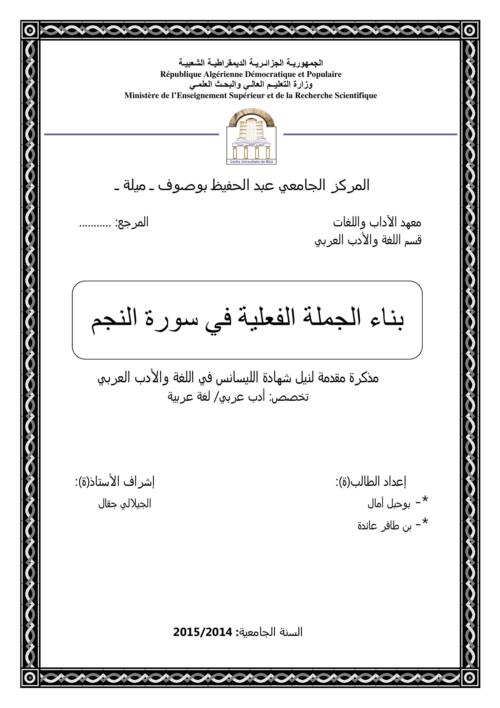 بوحبل أمال et al. (2015). بناء الجملة الفعلية في سورة النجم.