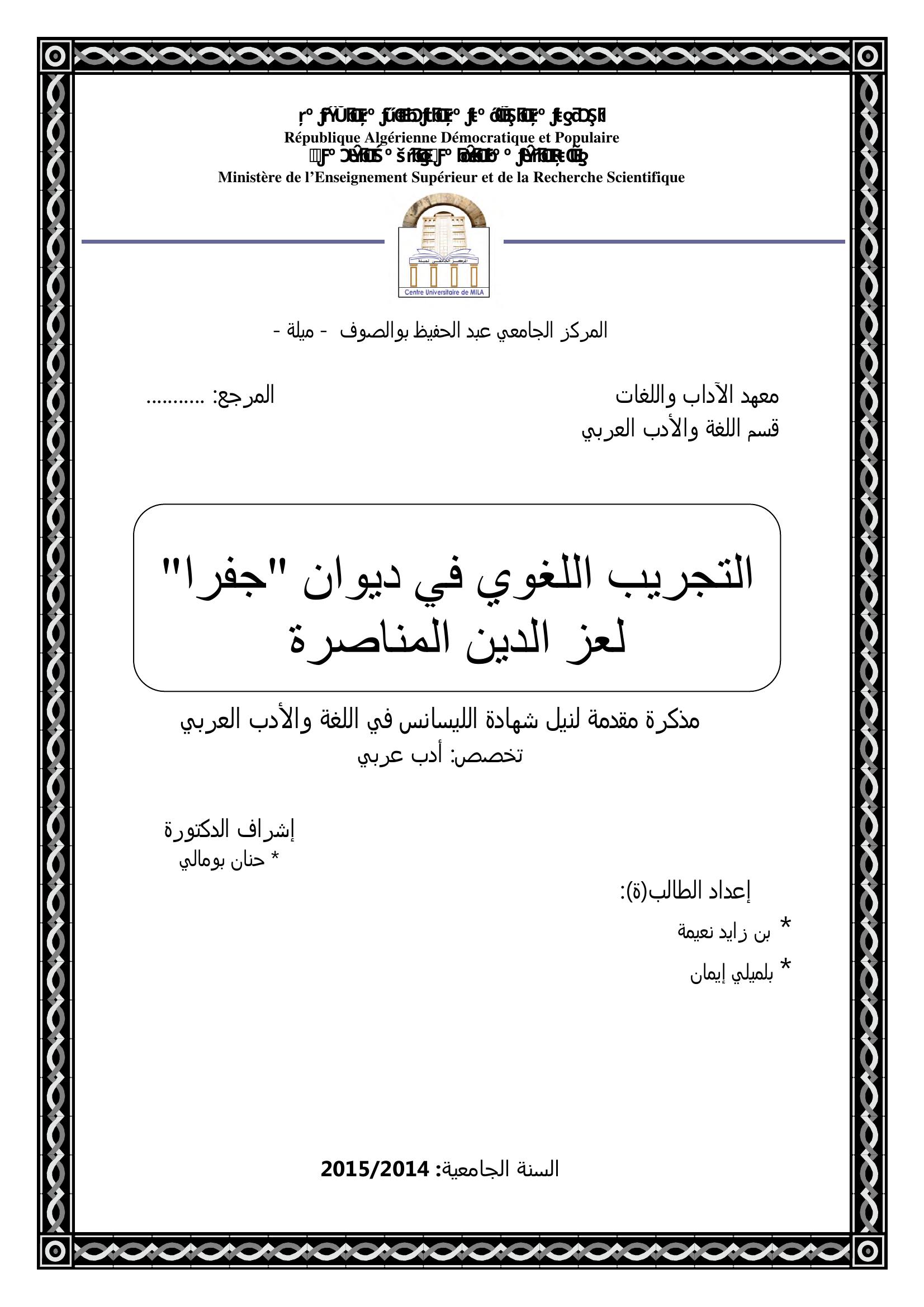 بن زايد نعيمة et al. (2015). التجريب اللغوي في ديوان جفرا لعز الدين المناصرة.