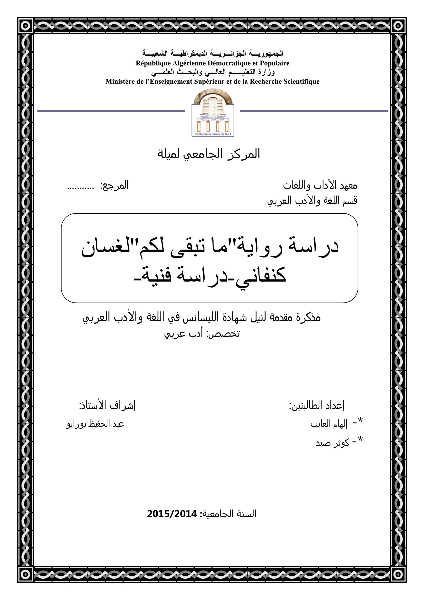العايب إلهام et al. (2015). رواية ما تبقى لكم لغسان كنفاني دراسة فنية.