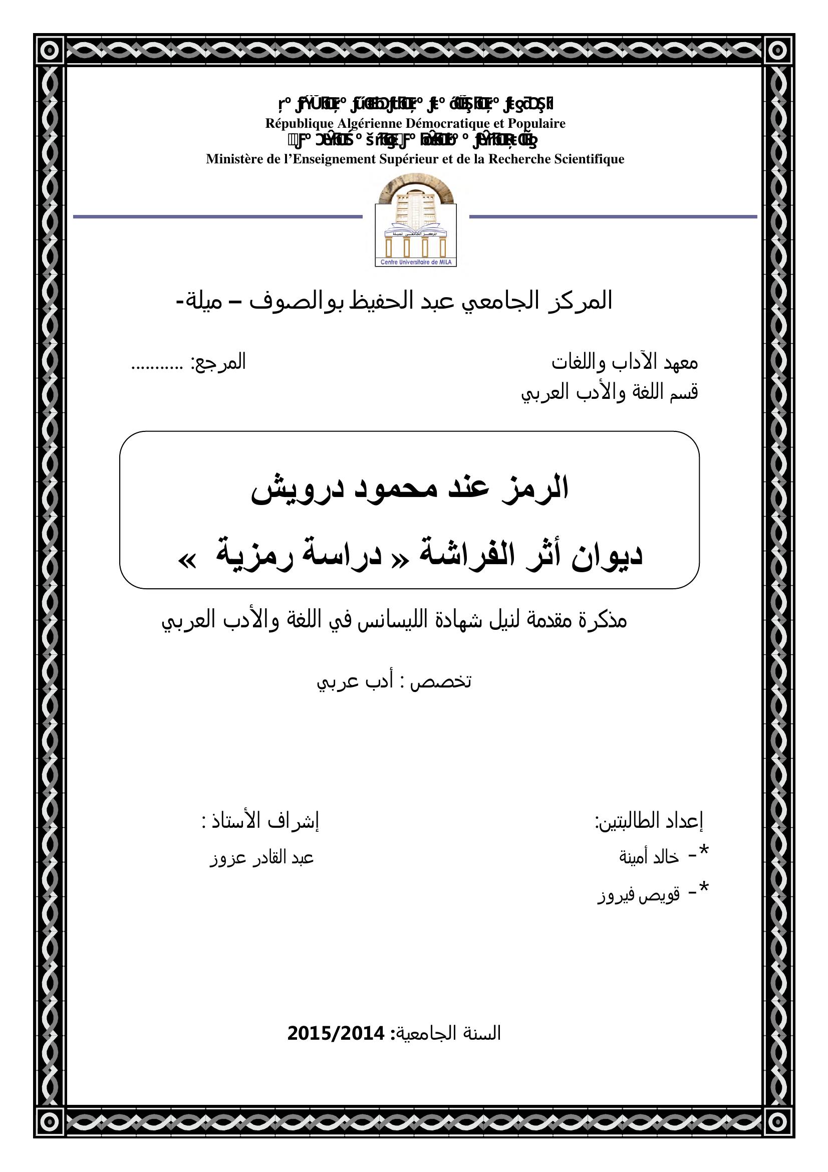 خالد أمينة et al. (2015). الرمز عند محمود درويش ديوان أثر الفراشة دراسة رمزية.