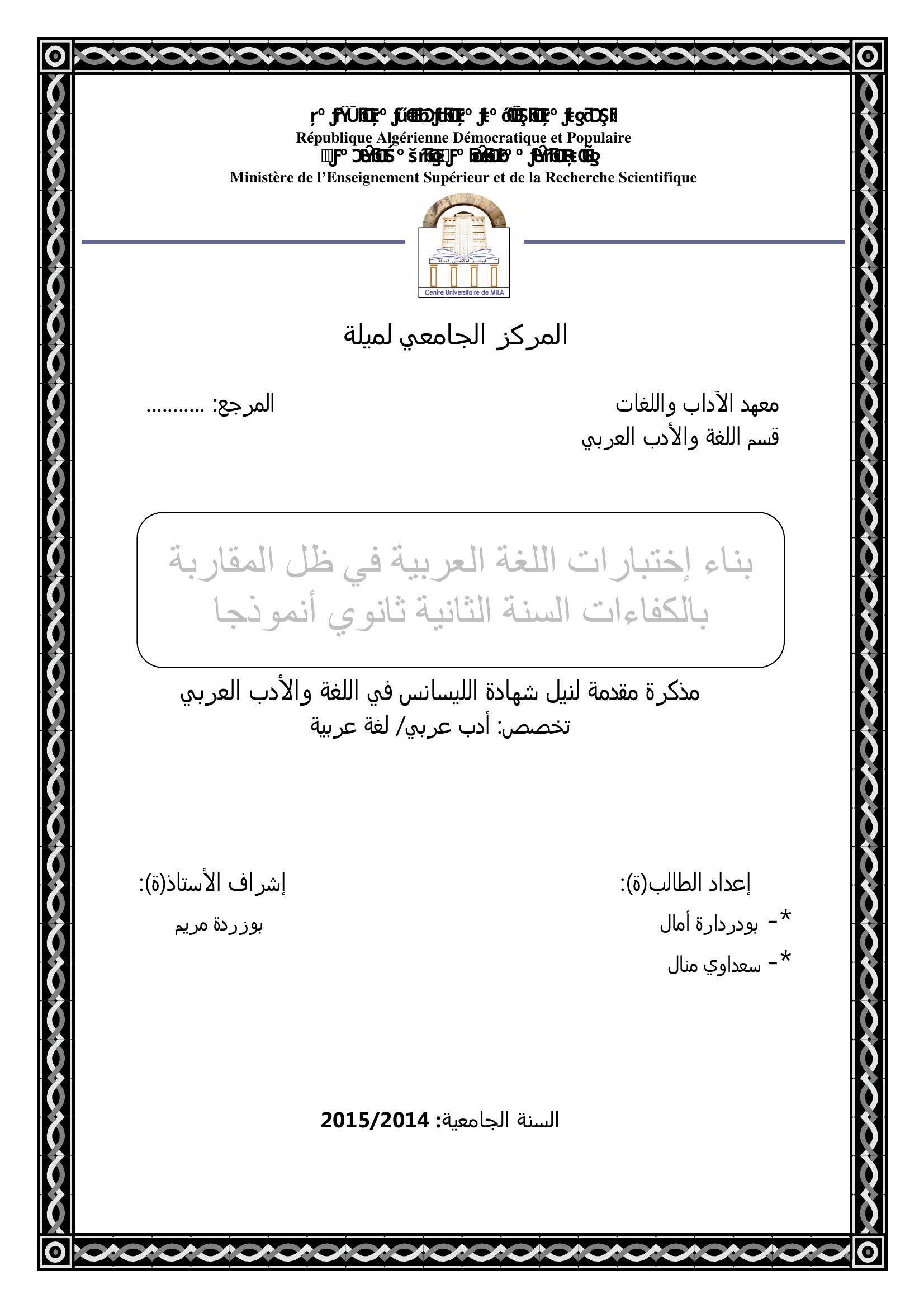 بودردارة آمال et al. (2015). بناء إختبارات اللغة العربية في ظل المقاربة بالكفاءات السنة الثانية ثانوي أنموذجا.