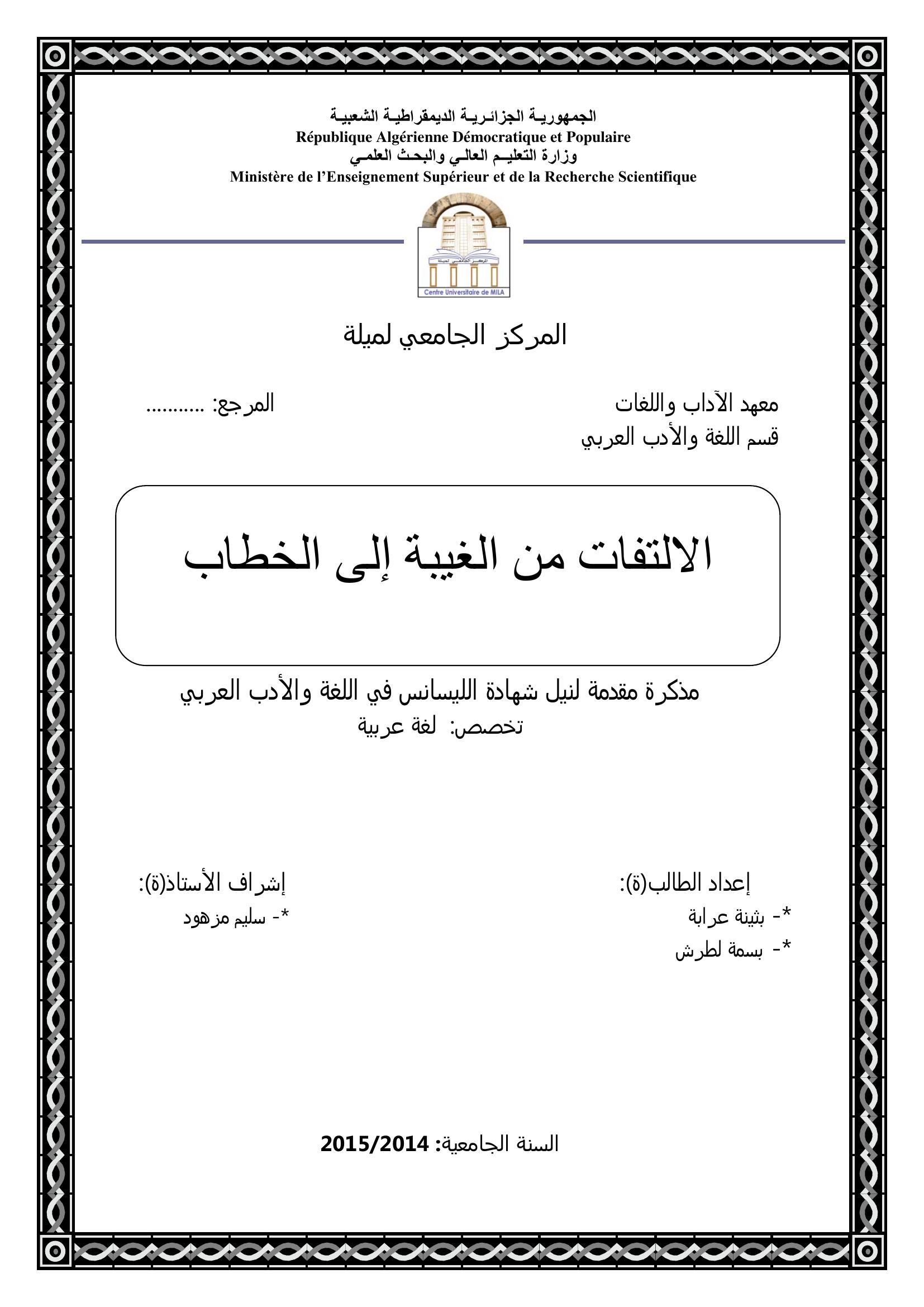 عرابة بثينة et al. (2015). الإلتفات من الغيبة إلى الخطاب دراسة أسلوبية سورة الشعراء أنموذجا.