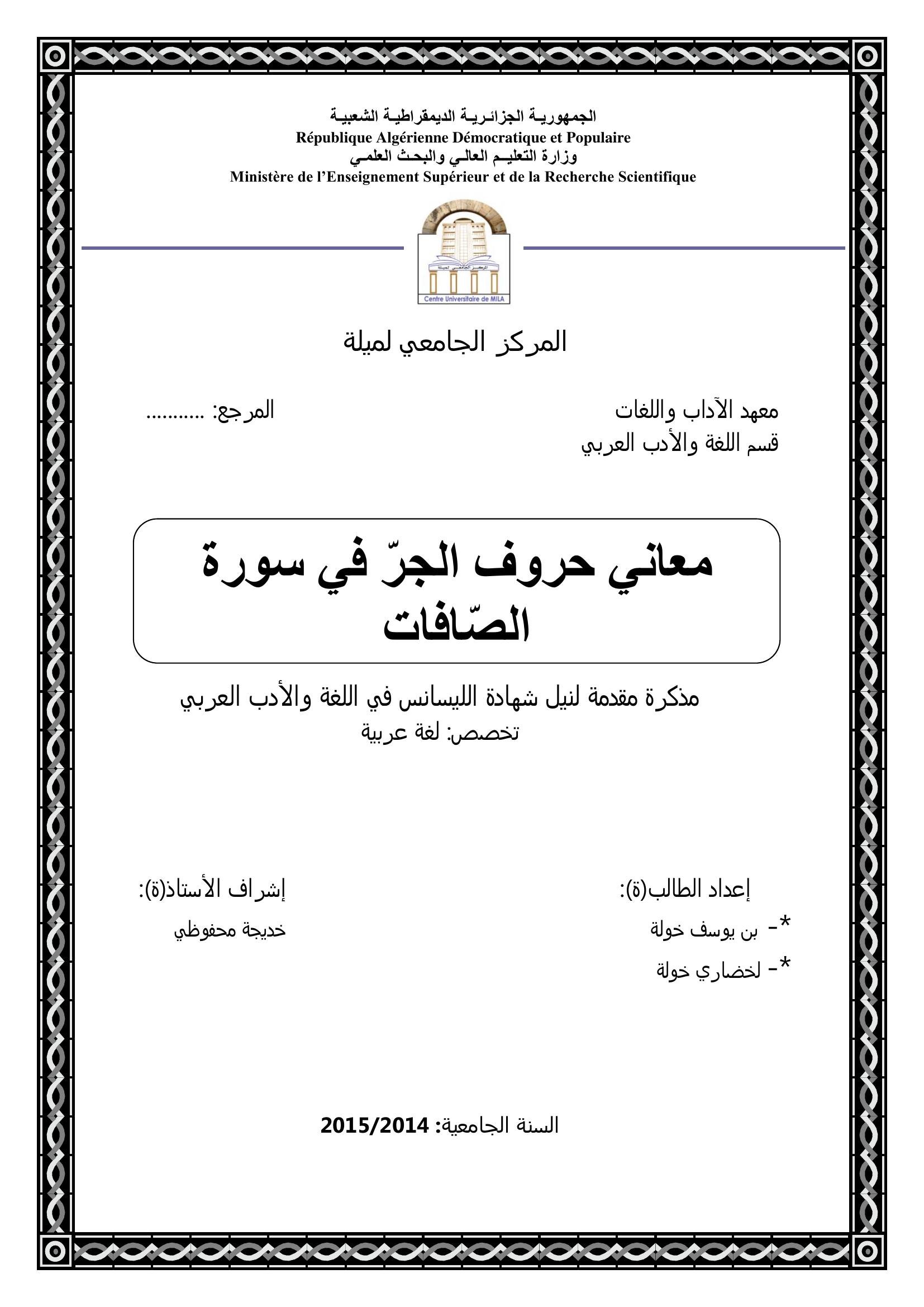 بن يوسف خولة et al. (2015). معاني حروف الجر في سورة الصافات.