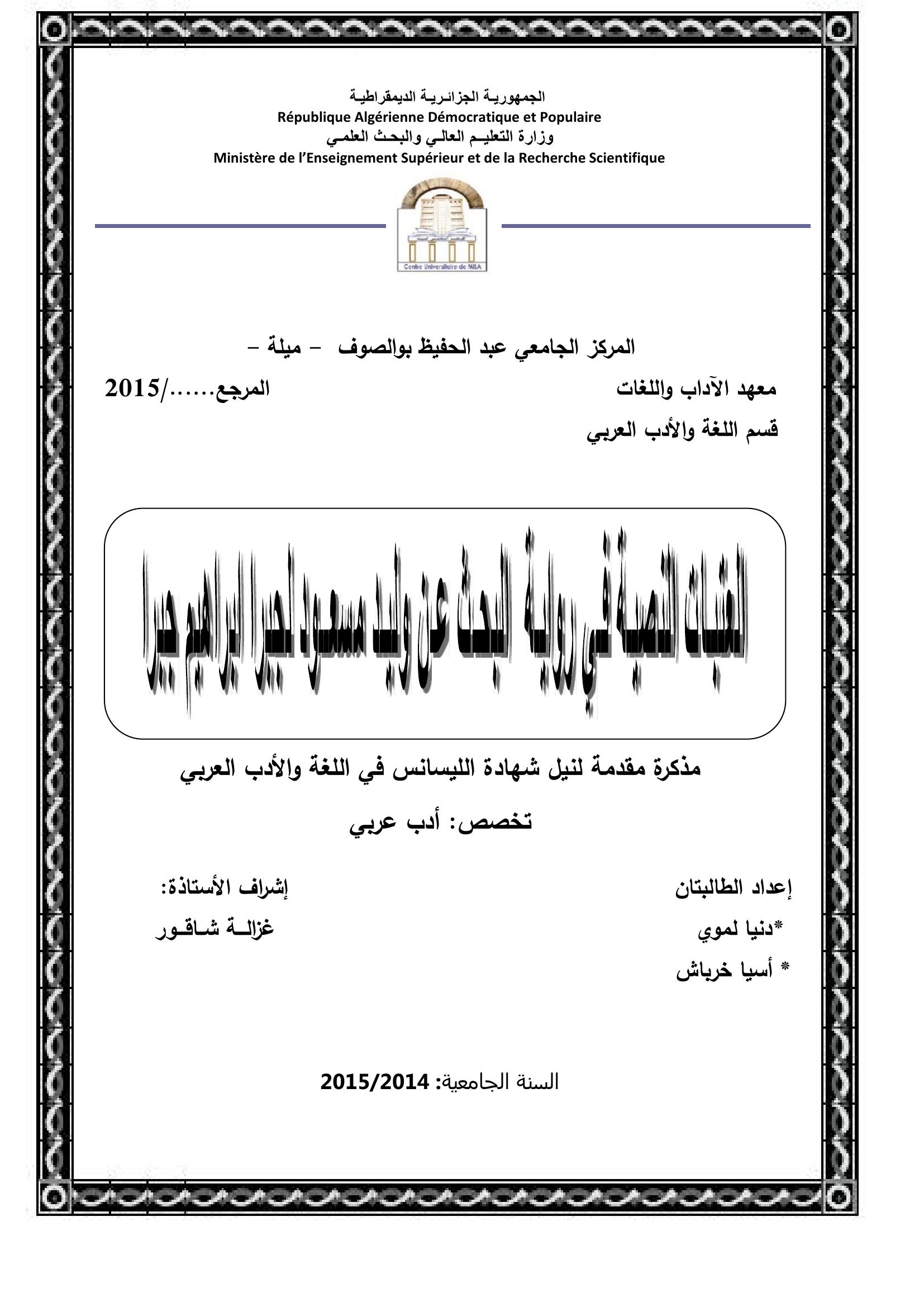 لموي دنيا et al. (2015). العتبات النصية في رواية البحث عن وليد مسعود لجبرا ابراهيم جبرا.