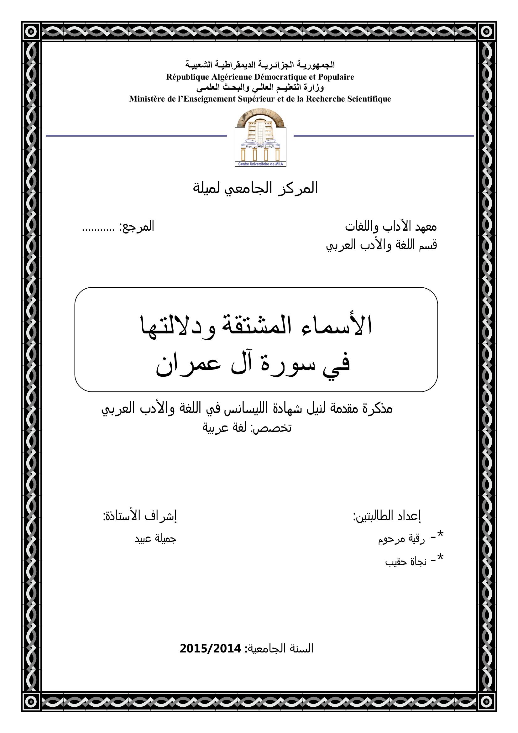 مرحوم رقية et al. (2015). الأسماء المشتقة ودلالتها في سورة آل عمران.