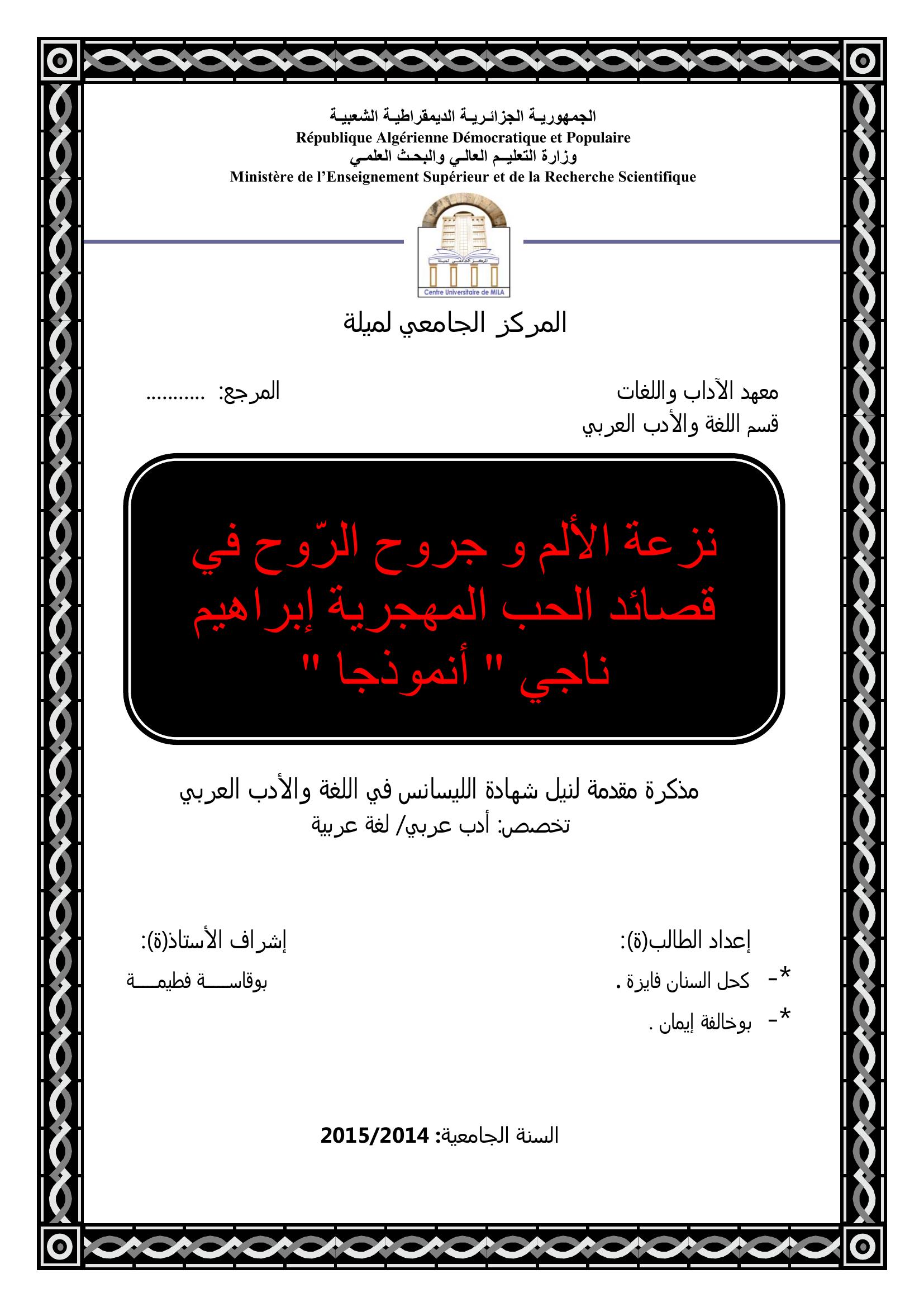 كحل السنان فايزة et al. (2015). نزعة الألم وجروح الروح في قصائد الحب المهجرية ابراهيم ناجي أنموذجا.
