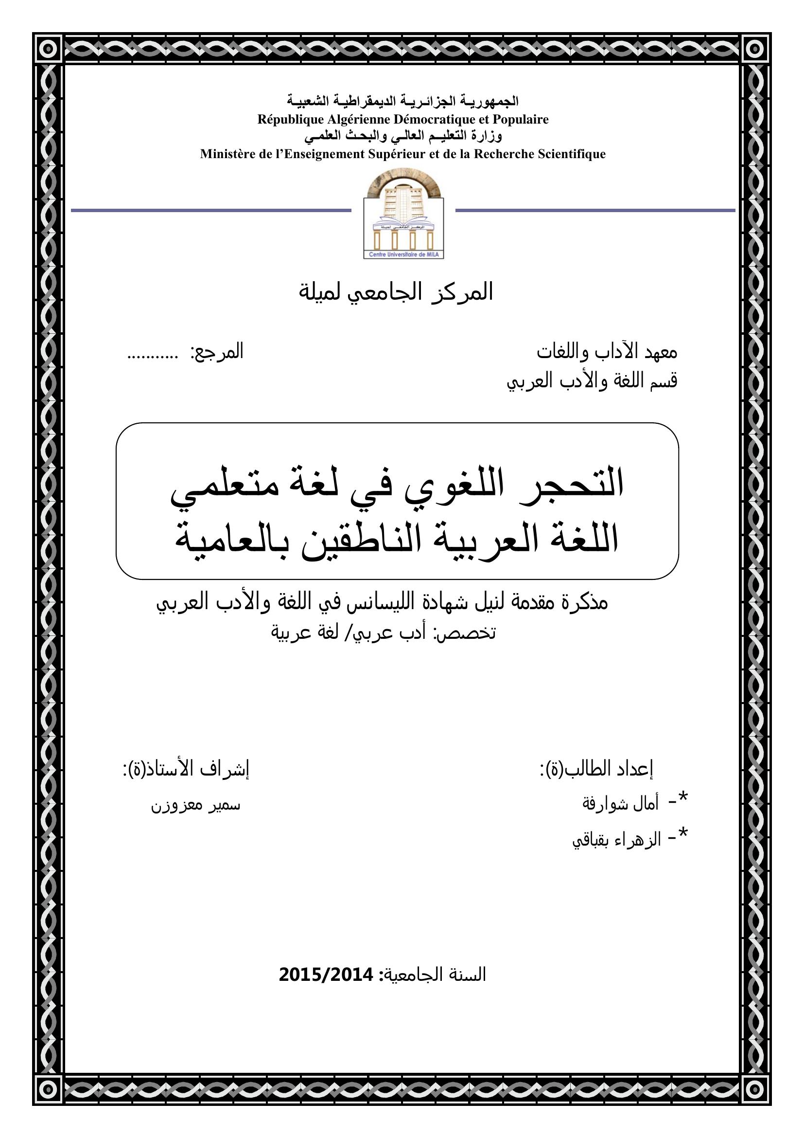 شوارفة أمال et al. (2015). التحجر اللغوي قي لغة متعلمي اللغة العربية الناطقين بالعامية.