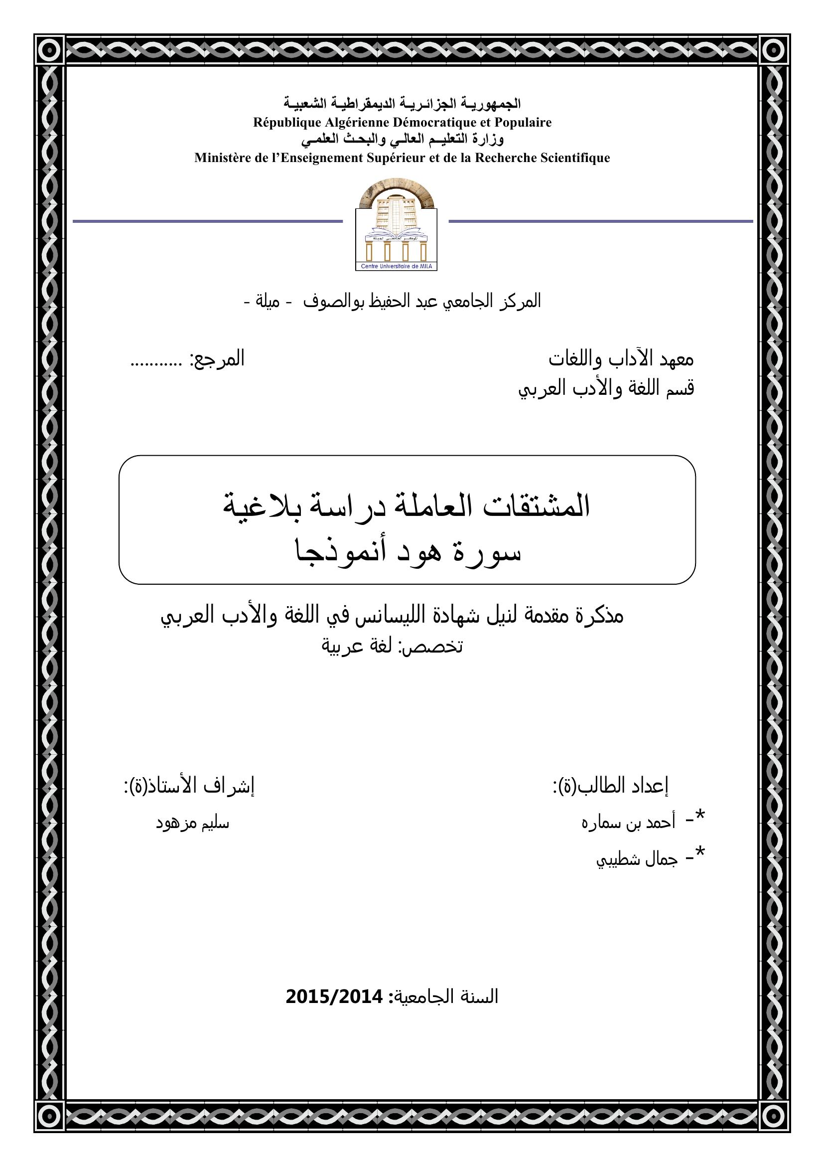 بن سمارة أحمد et al. (2015). المشتقات العاملة دراسة بلاغية سورة هود أنموذجا.