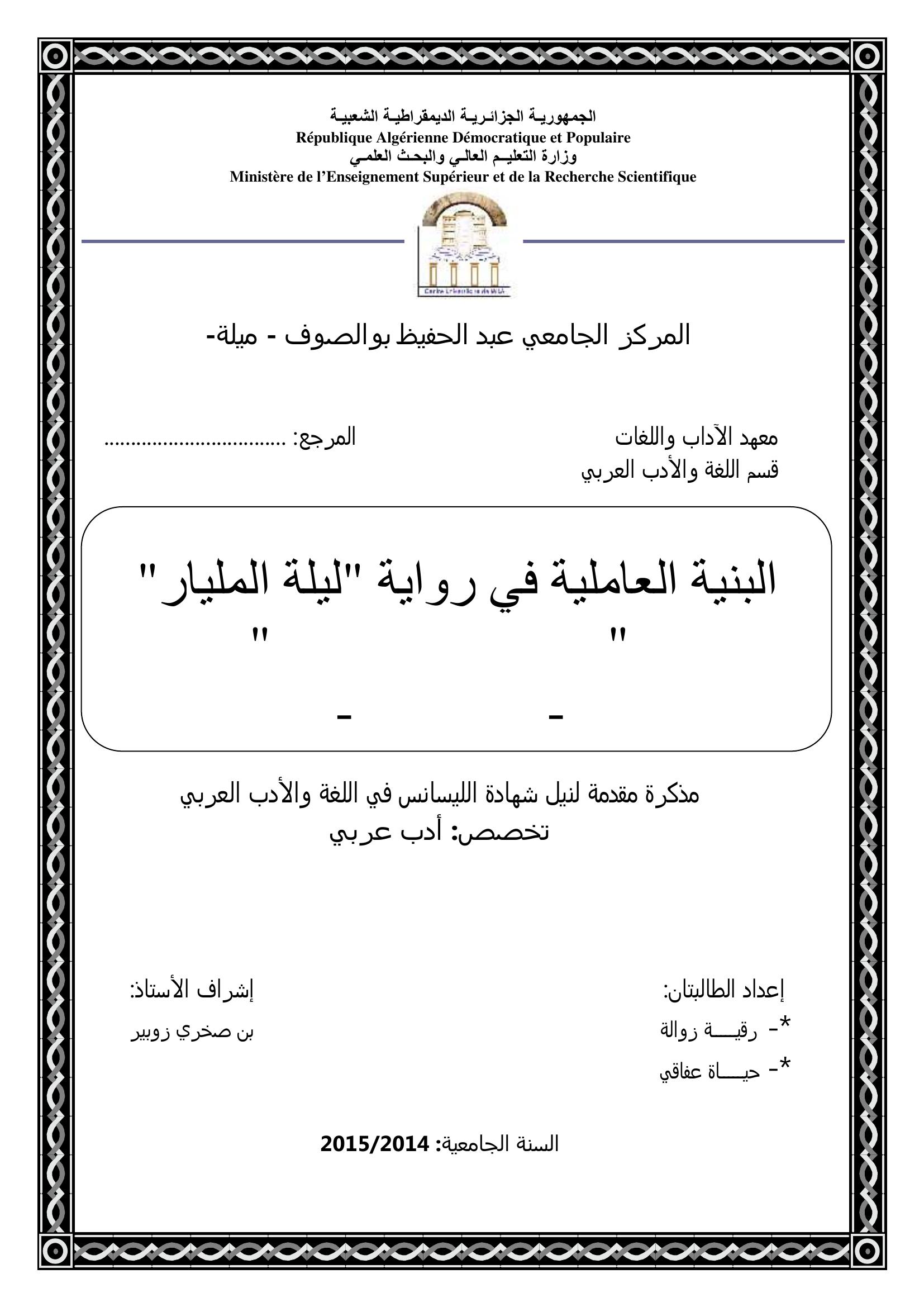 زوالة رقية et al. (2015). البنية العاملية في رواية ليلة المليار لغادة السمان أنموذجا.