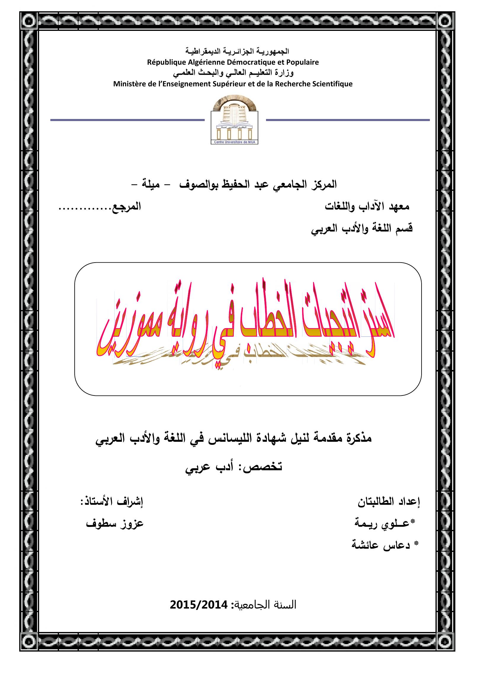 علوي ريمة et al. (2015). أشكال الخطاب في رواية مموزين.