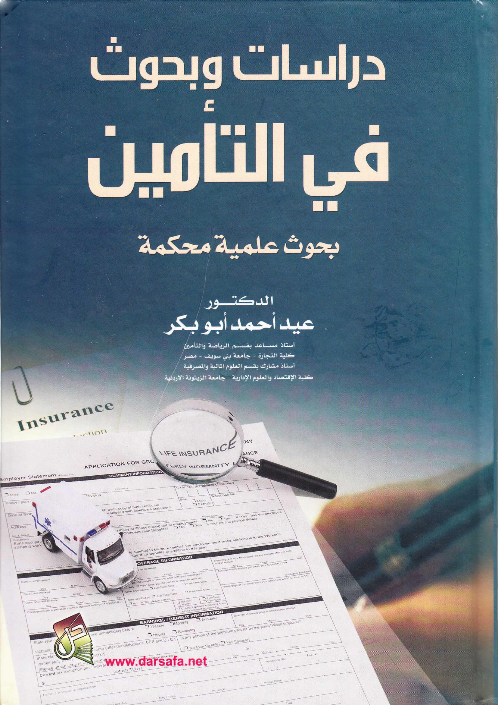 عيد احمد ابوبكر (2014). دراسات وبحوث في التأمين : بحوث علمية محكمة (ط.2) . دار صفاء للطباعة والنشر والتوزيع;