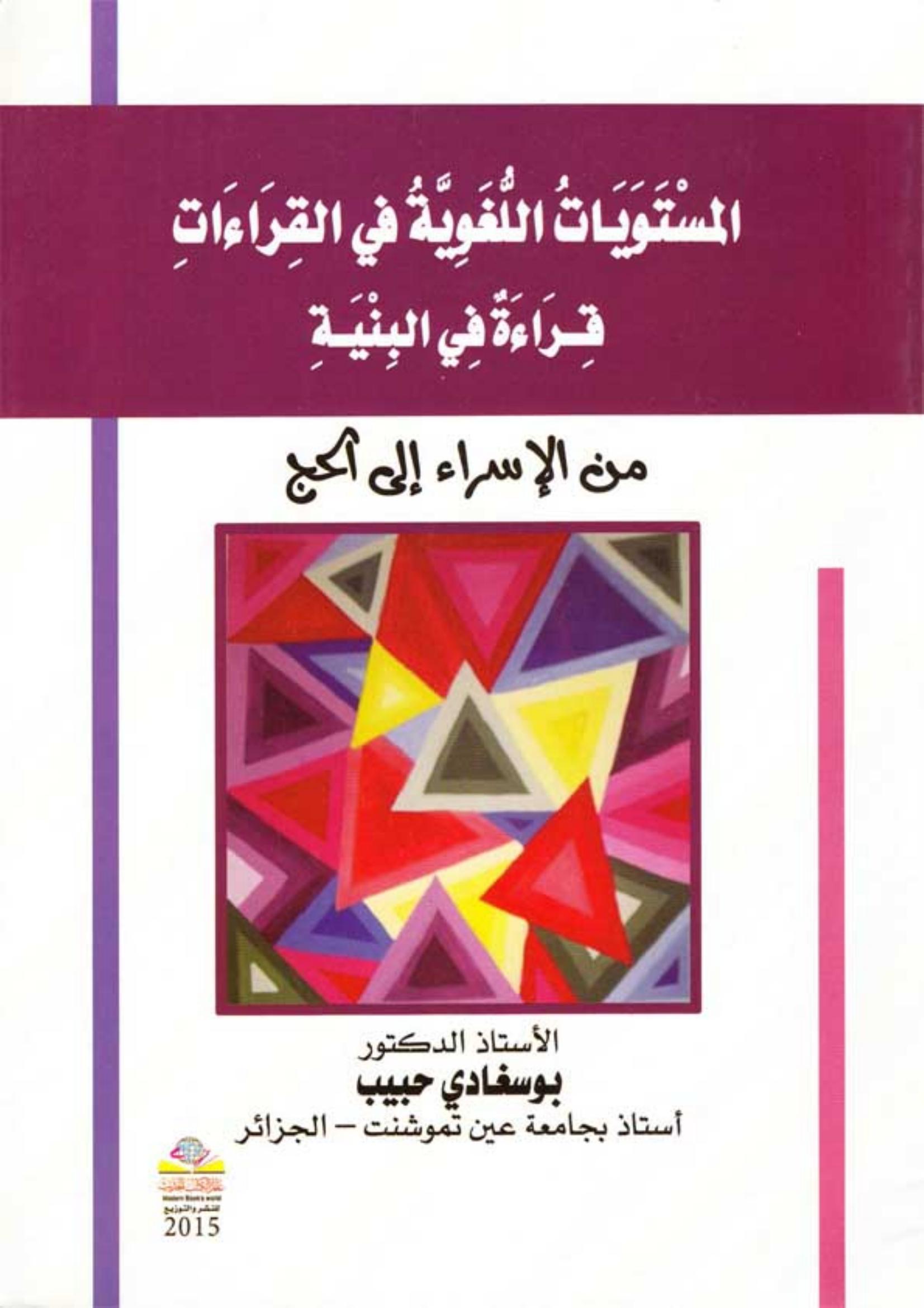 بوسغادي حبيب (2015). المستويات اللغوية في القراءات : قراءة في البنية من الاسراء الى الحج (ط.1) . عالم الكتب الحديث;