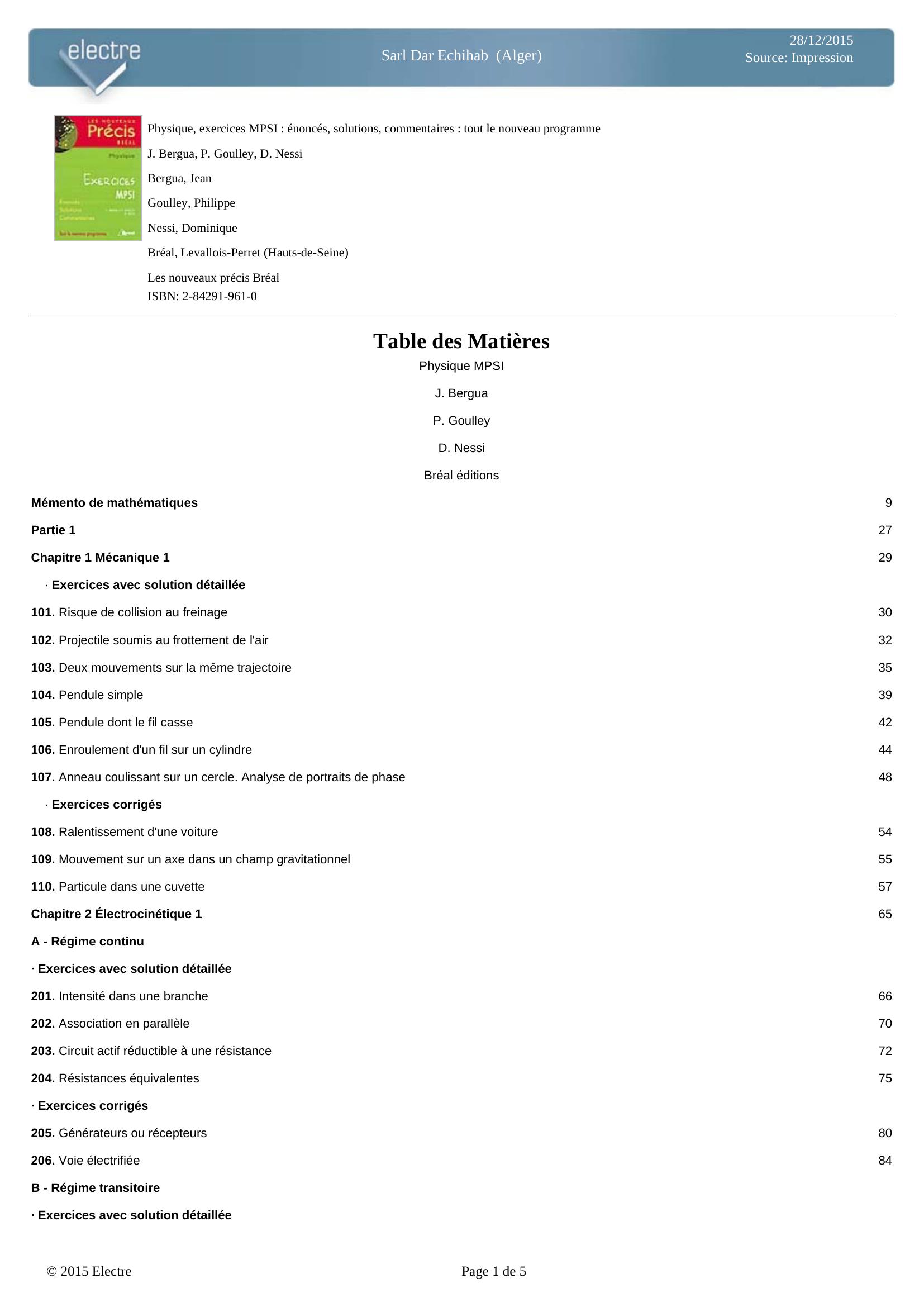 J. Bergua (2003). Physique, exercices MPSI : énoncés, solutions, commentaires (1.éd) . Bréal Editions;