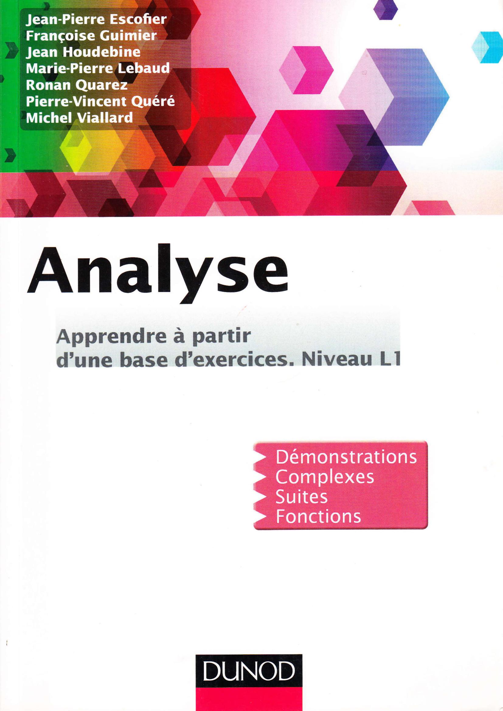 Jean-Pierre Escofier (2013). Analyse : apprendre à partir d'une base d'exercices : niveau L1 (1.éd) . Dunod;