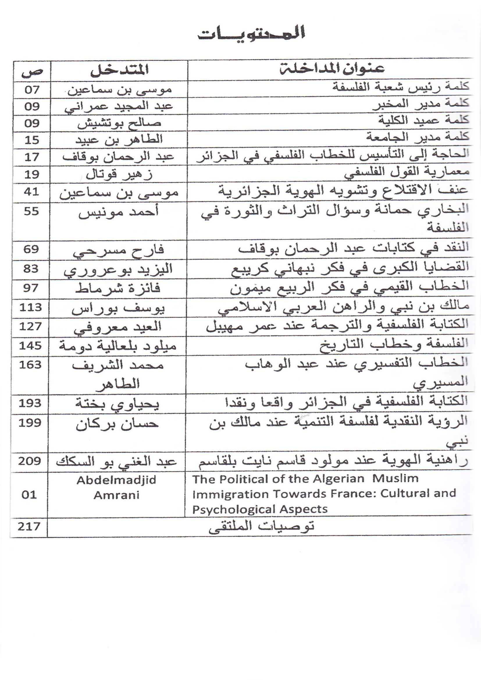 عبد المجيد عمراني (2014). الكتابة الفلسفية في الجزائر : الواقع والافاق
