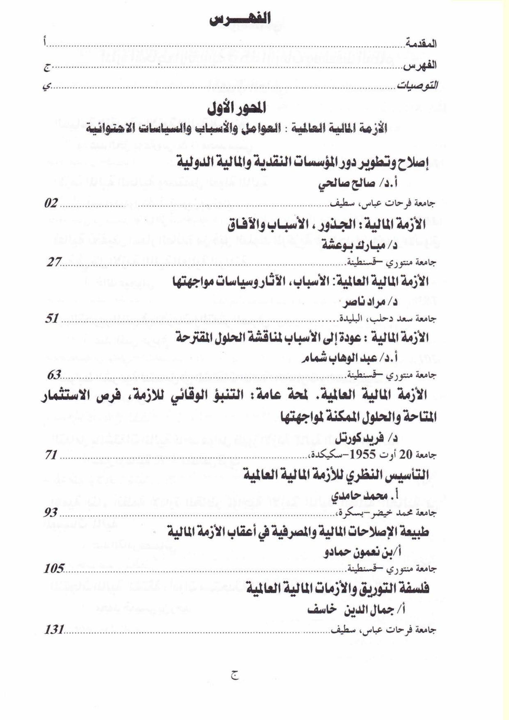 منشورات مخبر الشراكة والاستثمار في المؤسسات الصغيرة والمتوسطة في الفضاء الأورو -مغاربي* (أكتوبر 2009). الأزمة المالية والاقتصادية الدولية والحوكمة العالمية