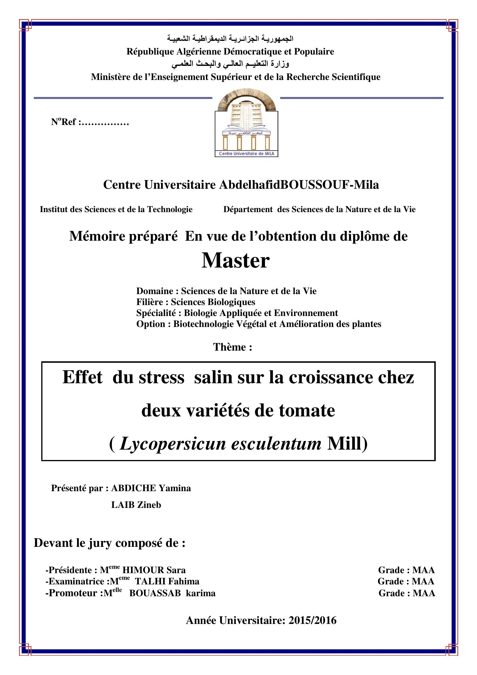abdiche yamina & HIMOUR Sara Présidente, T. (2016). effet du stress salin sur la croissance chez deux variétés de tomate (lycopersicum esculentum mill).