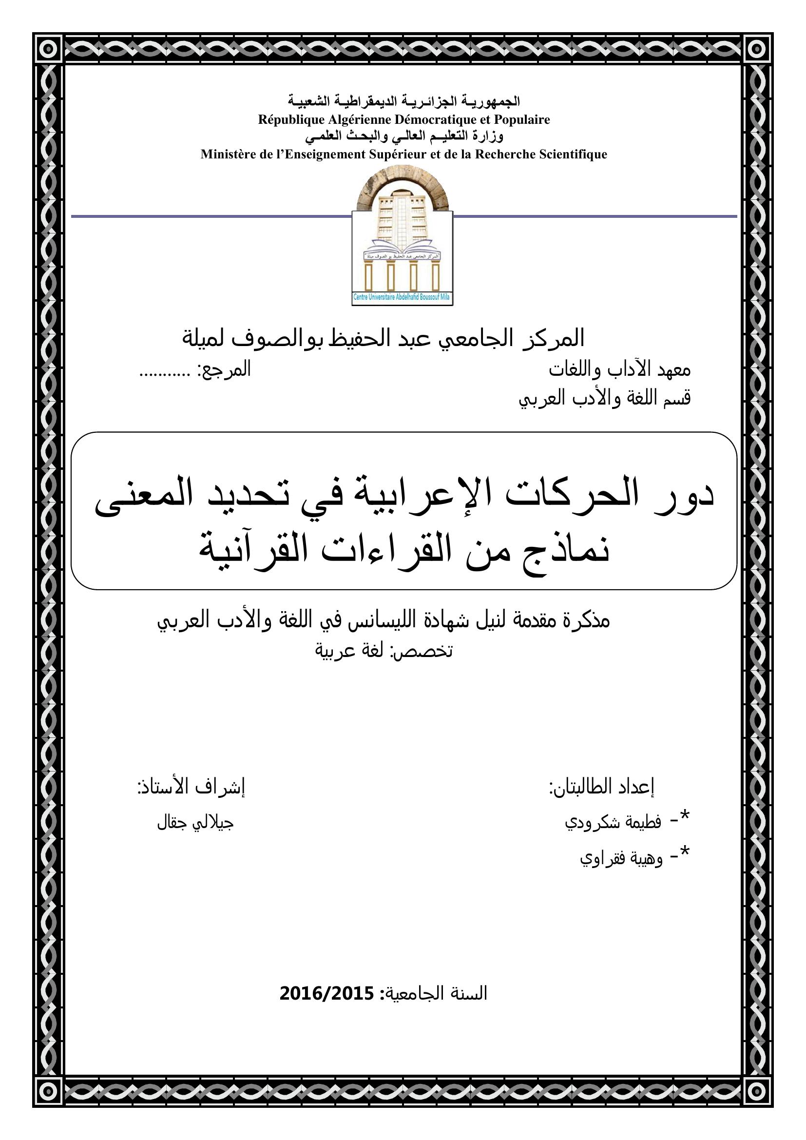 شكرودي فاطمة et al. (2016). دور الحركات الإعرابية في تحديد المعنى نماذج من القراءات القرآنية.
