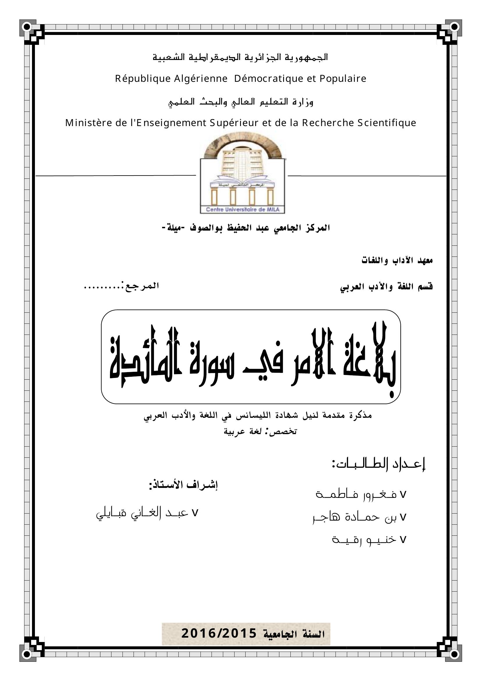 فغرور فاطمة et al. (2016). بلاغة الأمر في سورة المائدة.