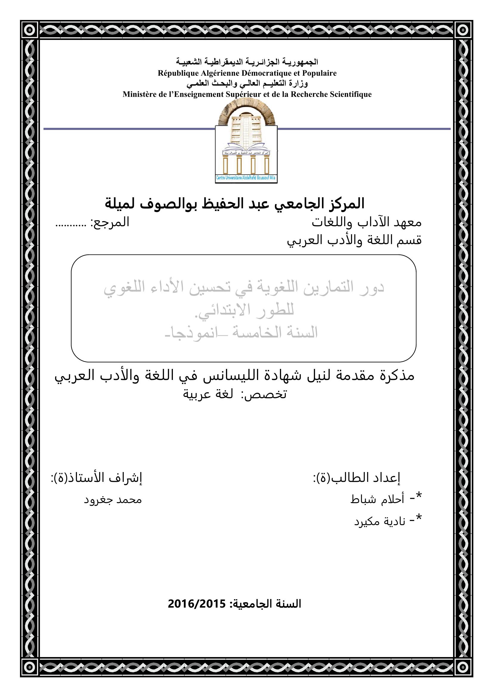 شباط أحلام et al. (2016). دور التمارين اللغوية في تحسين الأداء اللغوي للطور الإبتدائي السنة الخامسة أنموذجا.