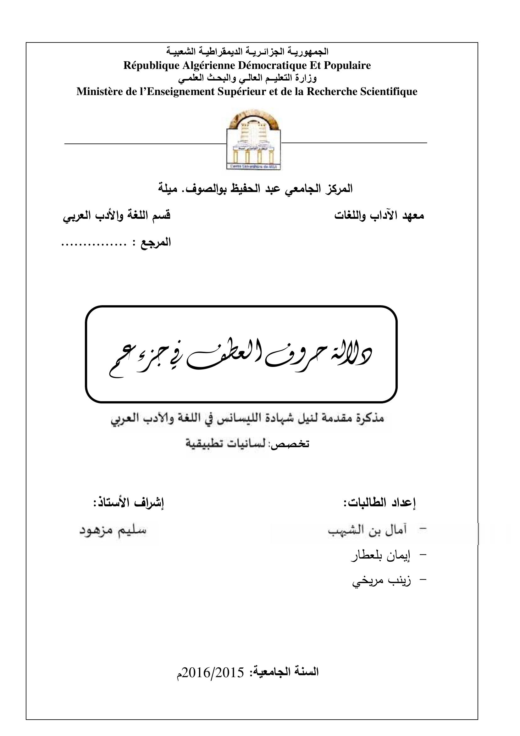 بن الشيهب آمال et al. (2016). دلالة حروف العطف في جزء عم.