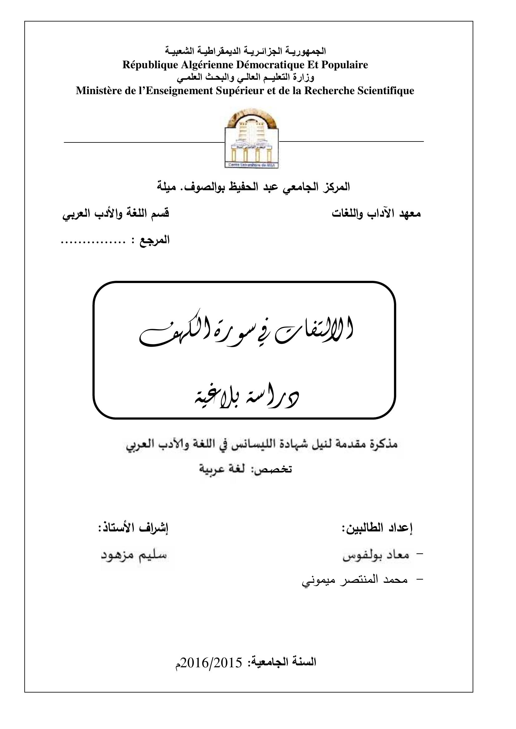 بولفوس معاد et al. (2016). الإلتفات في سورة الكهف دراسة بلاغية.