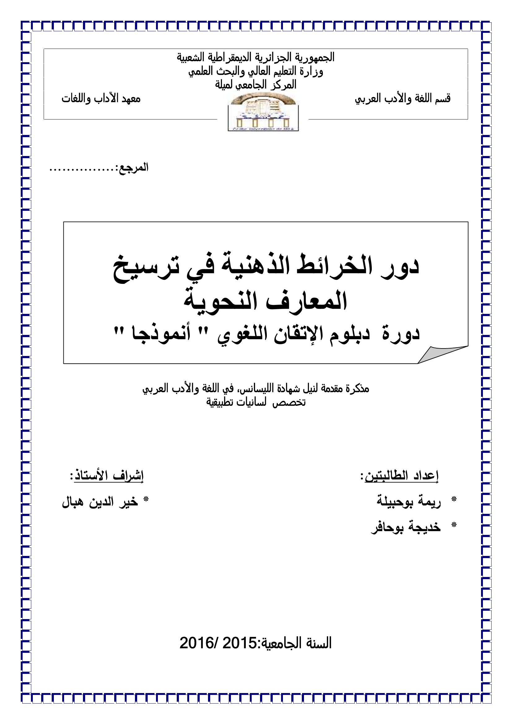 بوحبيلة ريمة et al. (2016). دور الخرائط الذهنية في ترسيخ المعارف النحوية دورة دبلوم الإتقان اللغوي "أنموذجا".