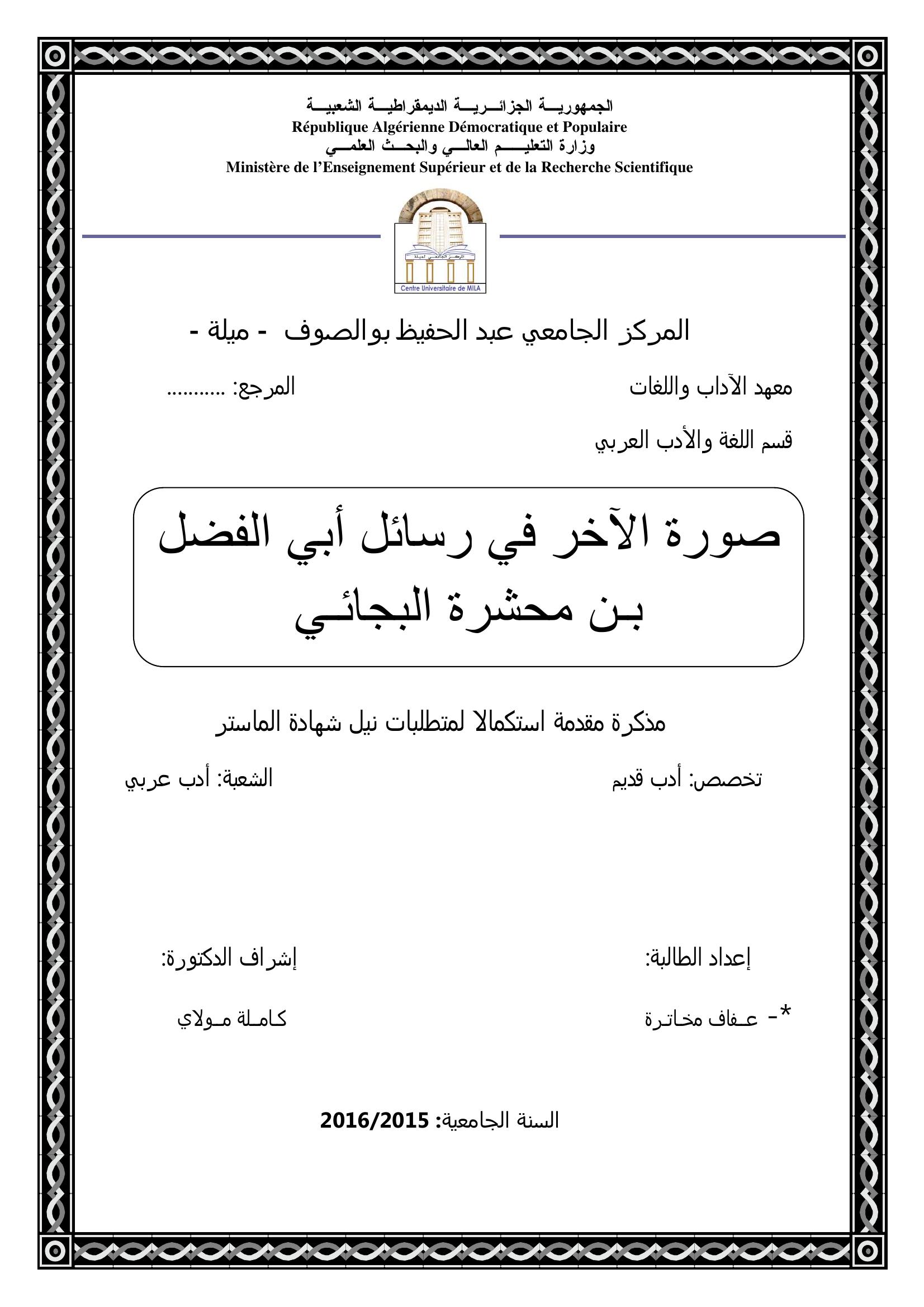 مخاترة عفاف & مولاي كاملة (مشرفا) (2016). صورة الآخر في رسائل أبي الفضل بن محشرة البجائي.