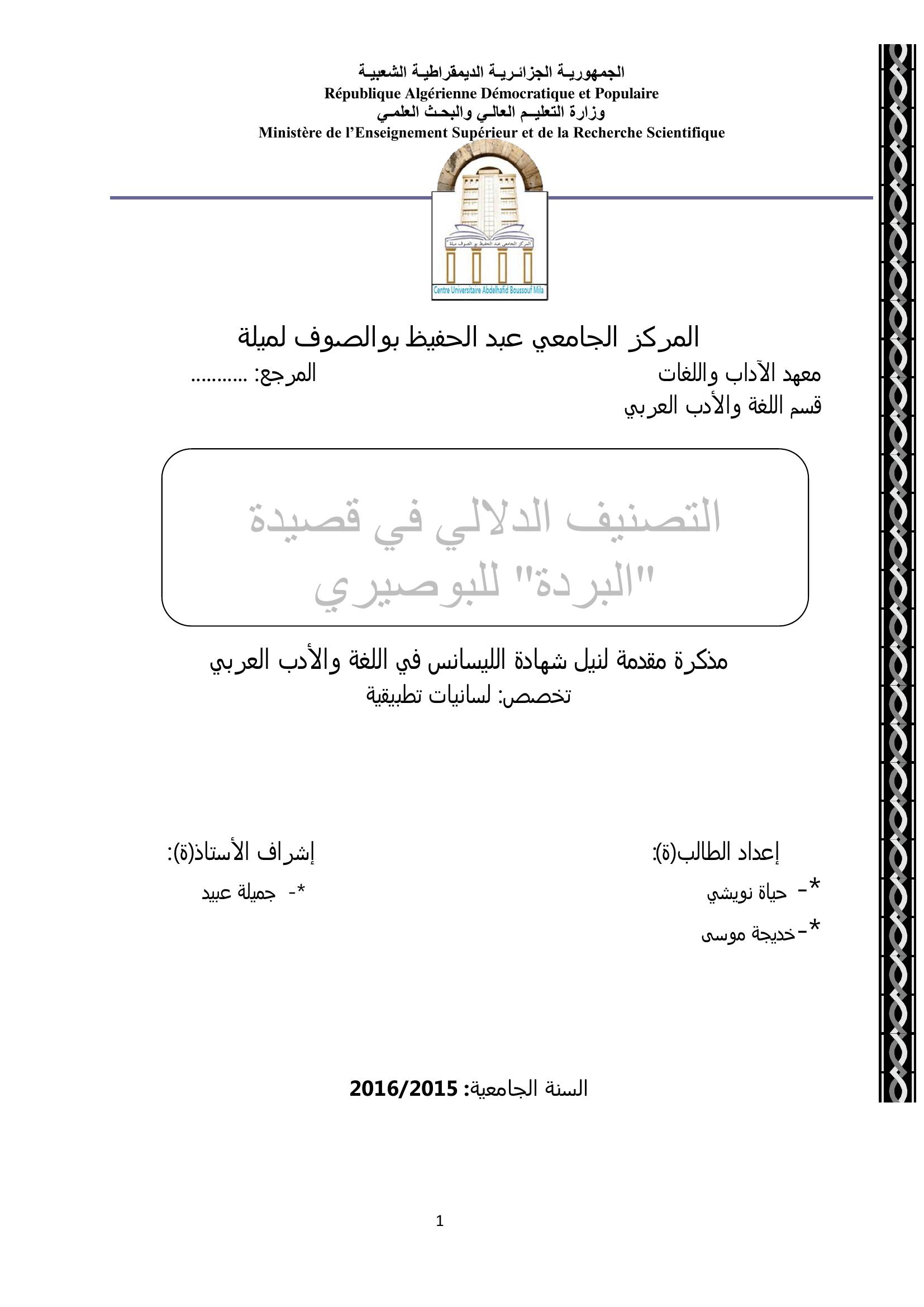 نويشي حياة et al. (2016). التصنيف الدلالي في قصيدة البردة للبوصيري.