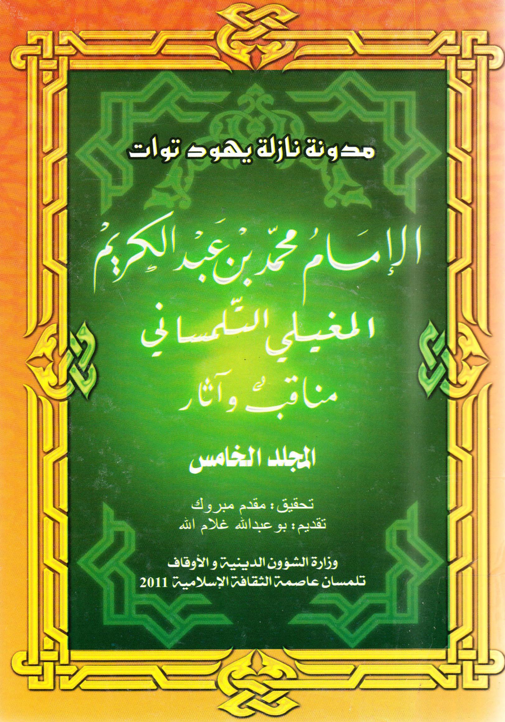 مقدم مبروك (2011). مدونة نازلة يهود توات الامام محمد بن عبد الكريم المغيلي التلمساني مناقب واثار . وزارة الشؤون الدينية و الاوقاف;