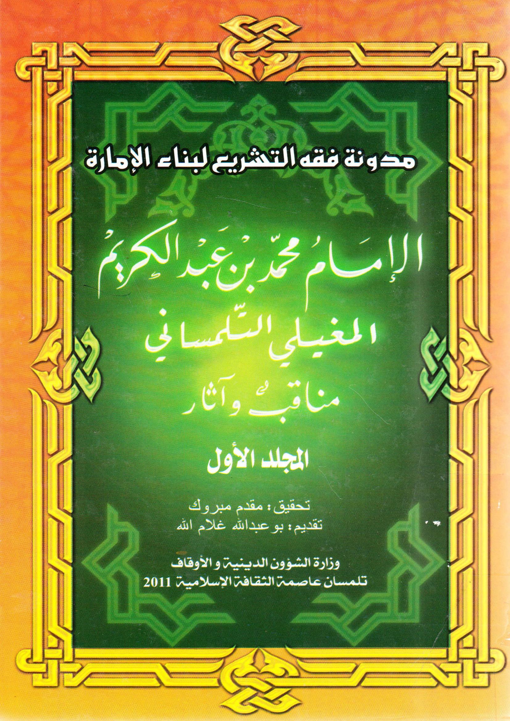 مقدم مبروك (2011). مدونة فقه التشريع لبناء الامارة الامام محمد بن عبد الكريم المغيلي التلمساني مناقب واثار . وزارة الشؤون الدينية و الاوقاف;