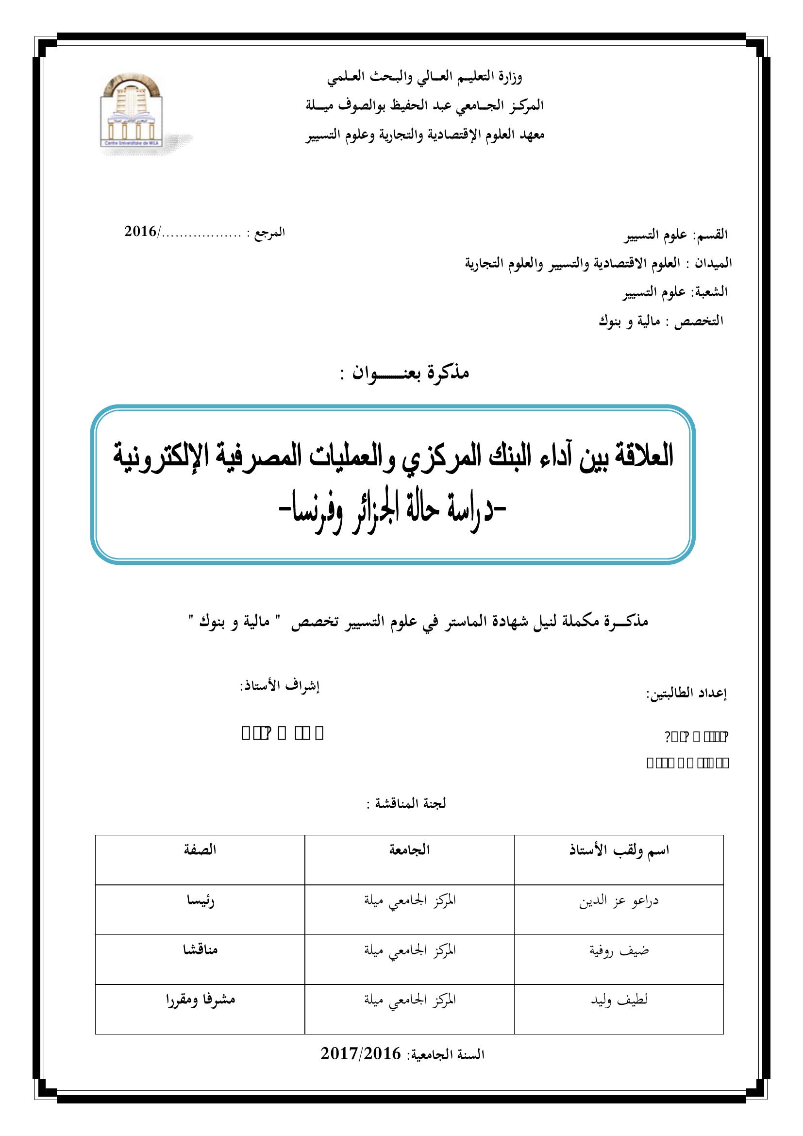 العلاقة بين أداء البنك المركزي والعمليات المصرفية الإلكترونية : دراسة حالة الجزائر وفرنسا