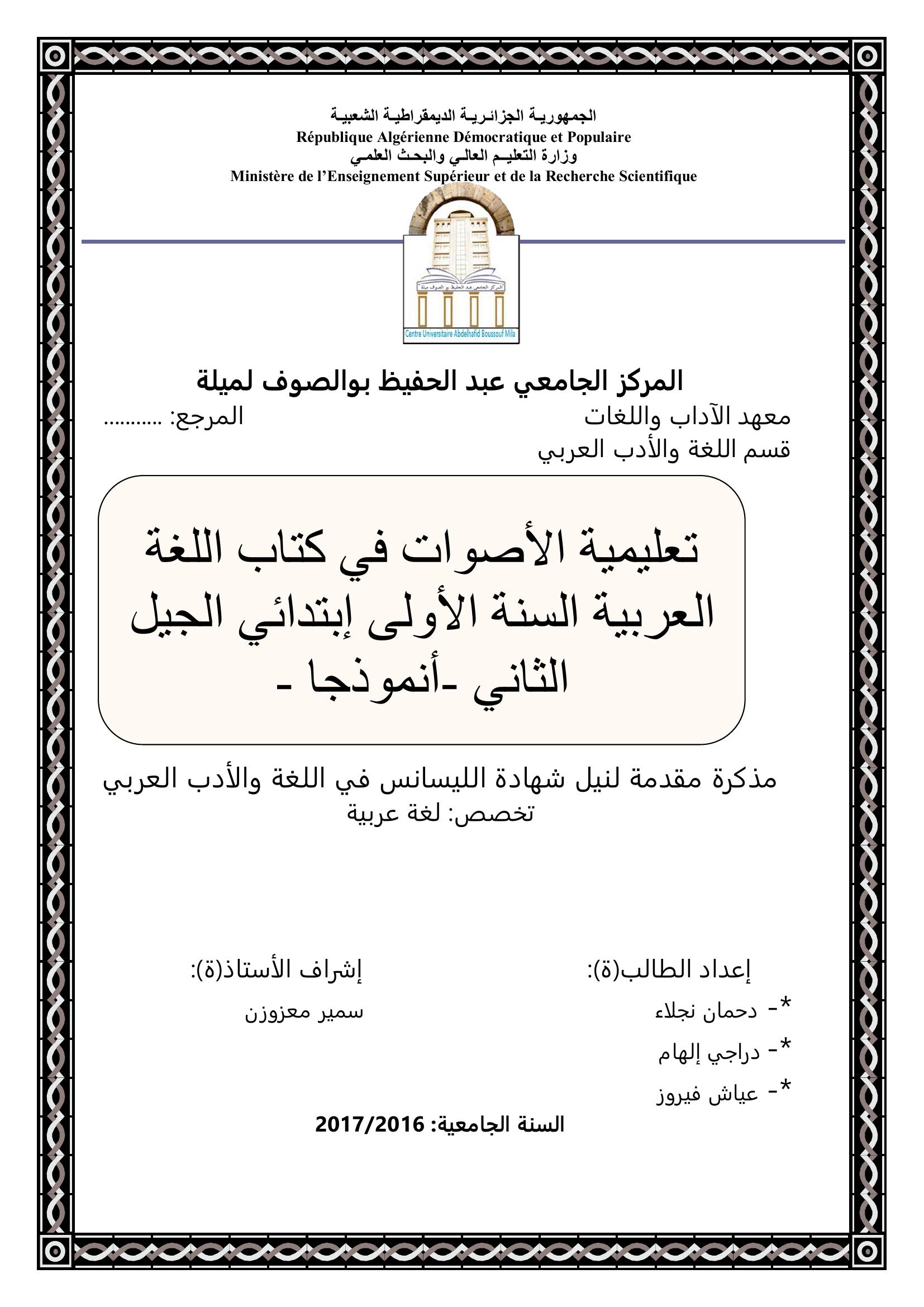 دحمان نجلاء et al. (2017). تعليمية الأصوات في كتاب اللغة العربية السنة الأولى إبتدائي الجيل الثاني.
