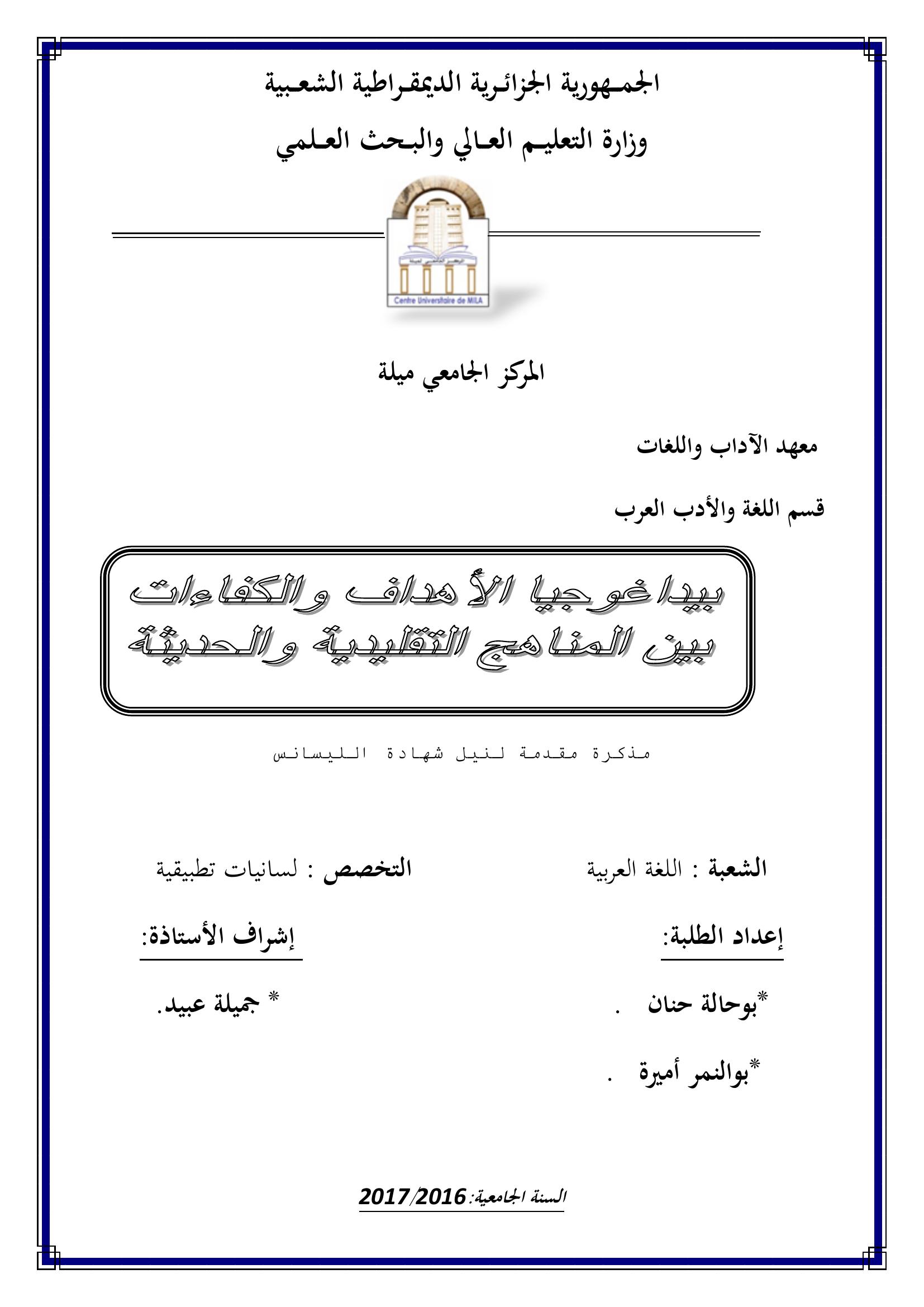 بوحالة حنان et al. (2017). بيداغوجيا الأهداف والكفاءات بين المناهج التقليدية والحديثة.