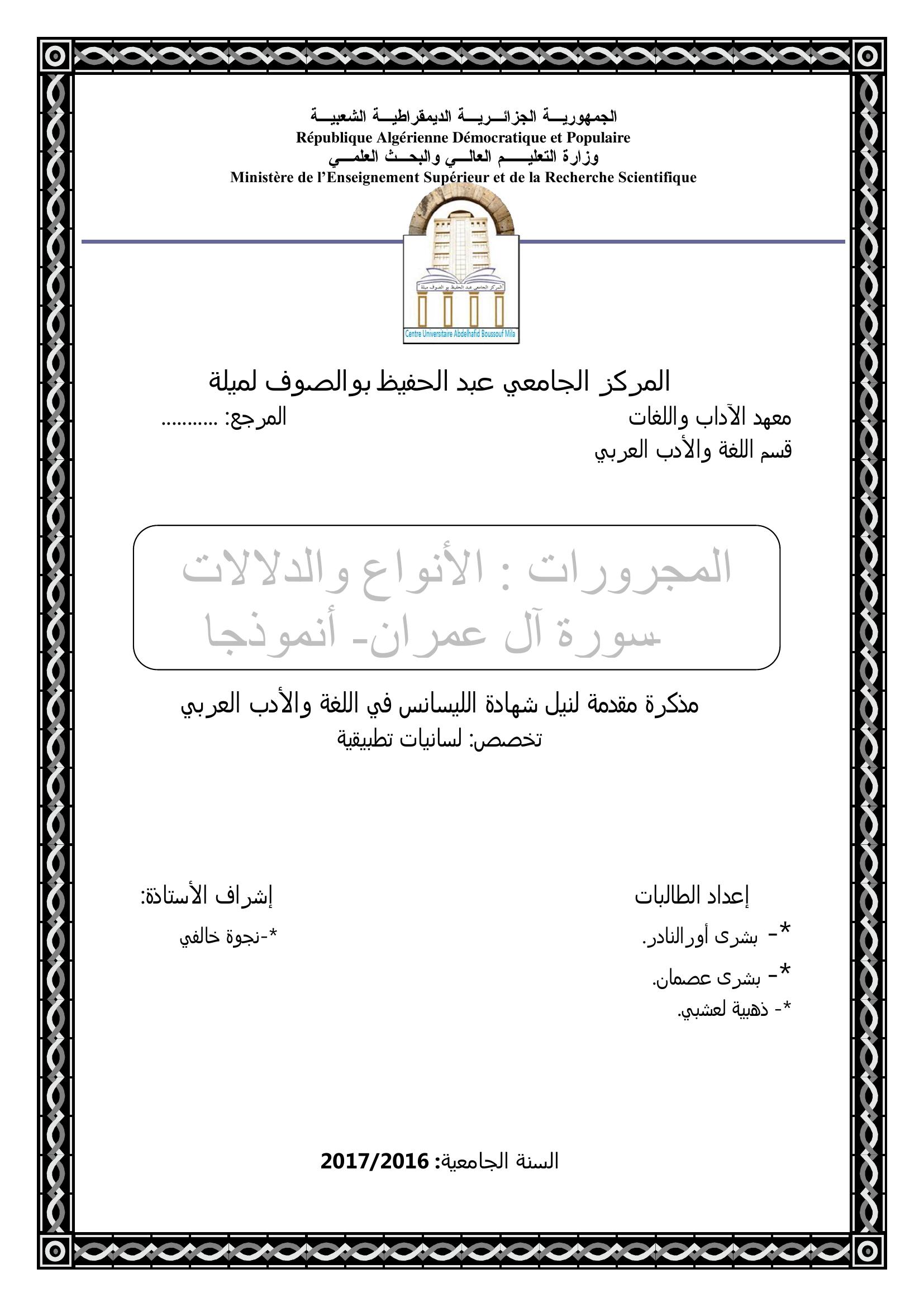 أور النادر بشرى et al. (2017). المجرورات الأنواع والدلالات سورة آل عمران أنموذجا.