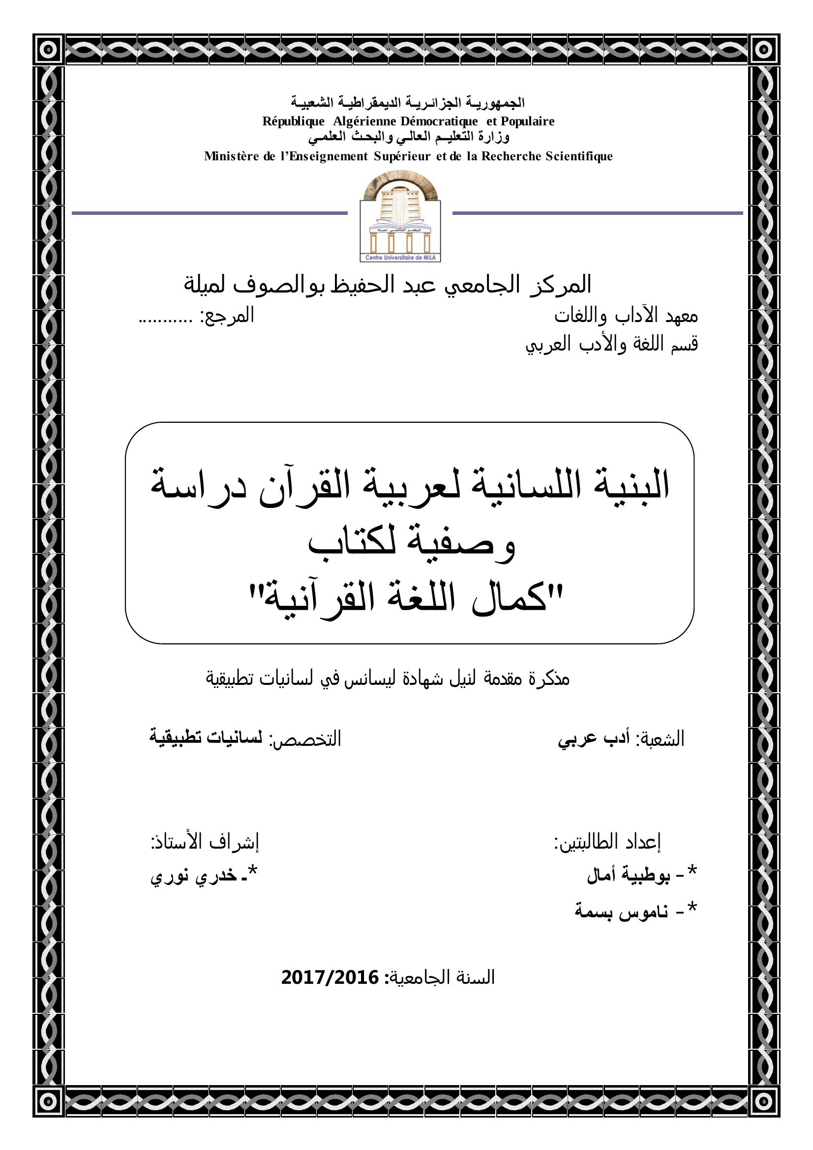 بوطبية آمال et al. (2017). البنية اللسانية لعربية القرآن دراسة وصفية لكتاب كمال اللغة القرآنية.