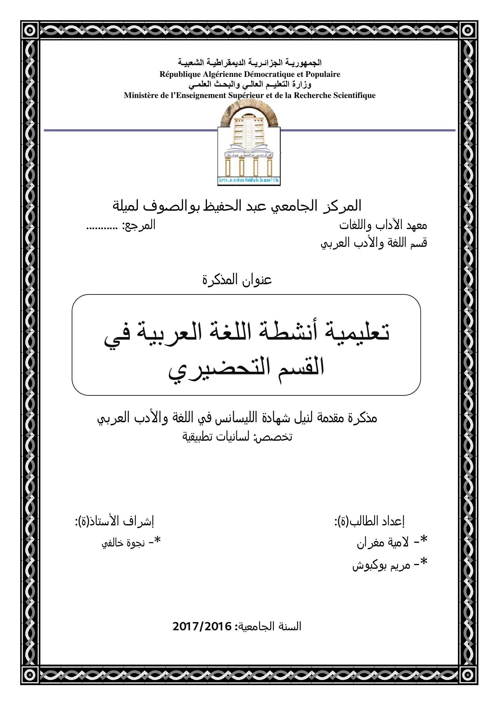 مغران لامية et al. (2017). تعليمية أنشطة اللغة العربية في القسم التحضيري.