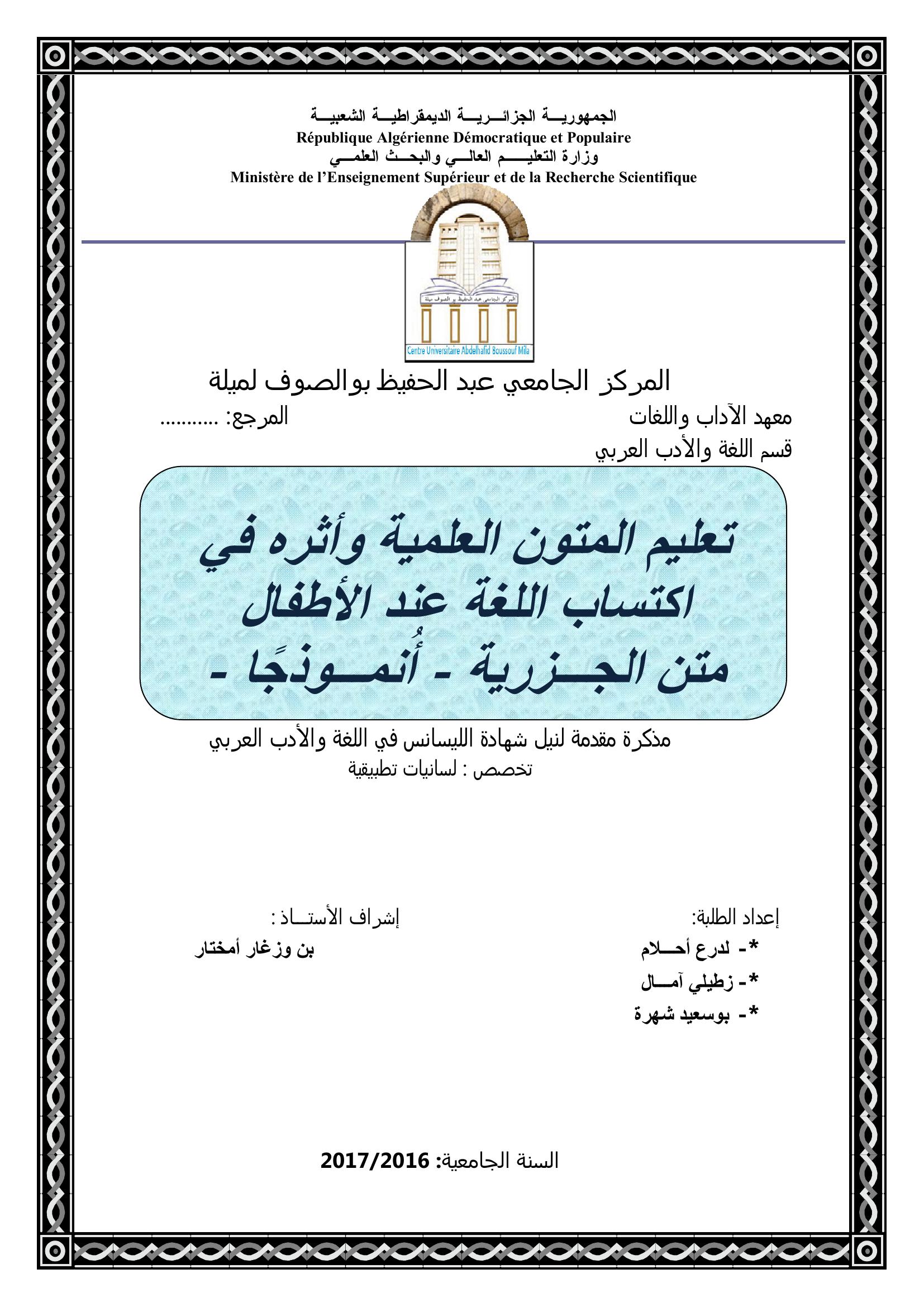 لدرع أحلام et al. (2017). تعليمية المتون العلمية وأثره في إكتساب اللغة عند الأطفال متن الجزرية أنموذجا.