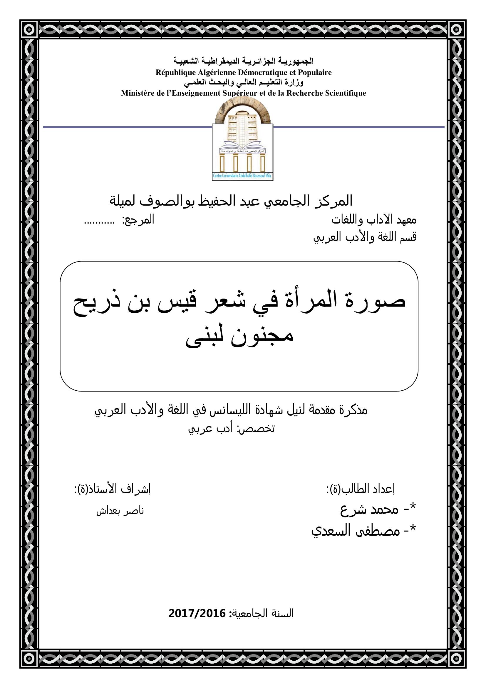 شرع محمد et al. (2017). صورة المرأة في شعر قيس بن ذريح مجنون لبنى.