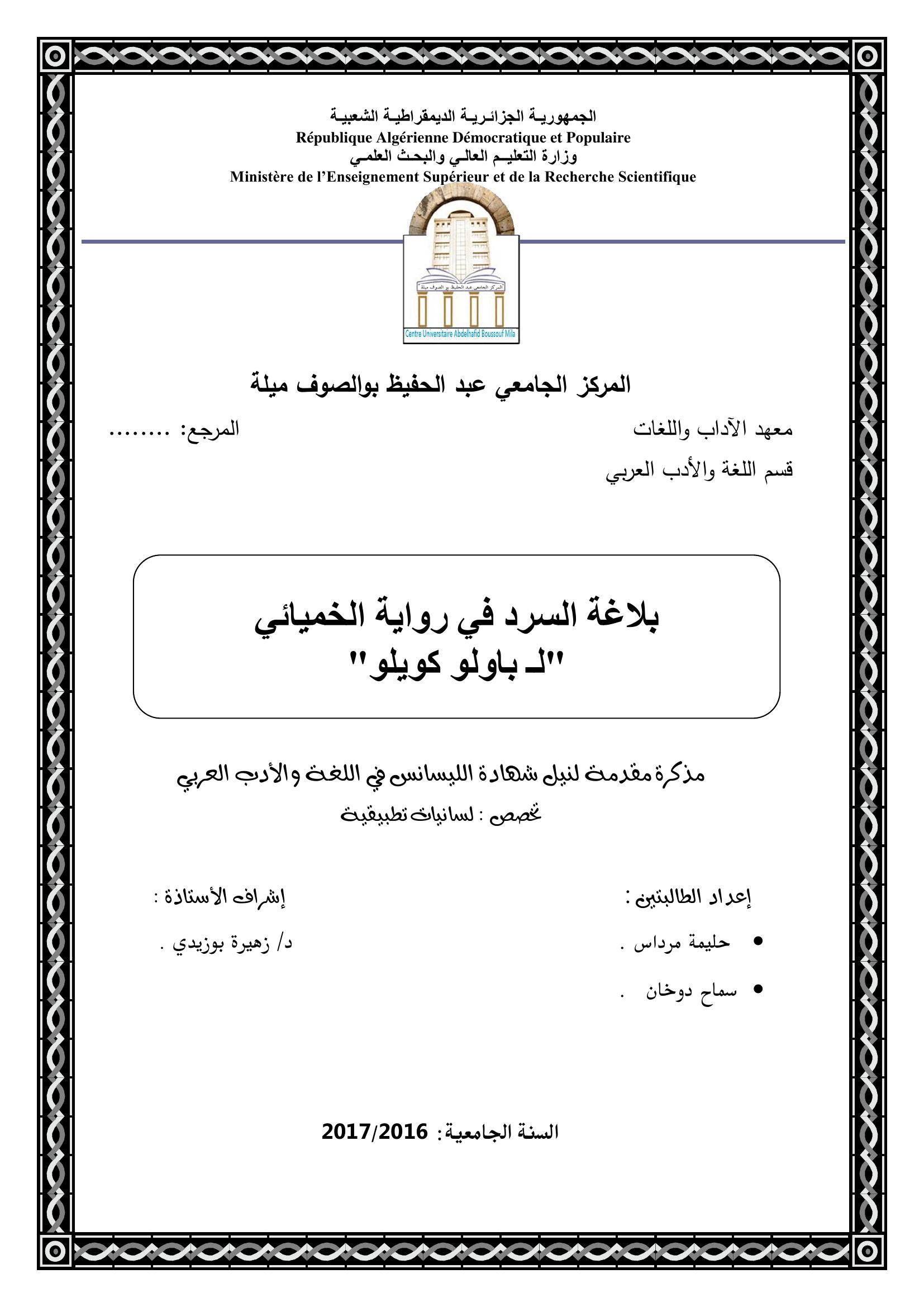 مرداس حليمة et al. (2017). بلاغة السرد في رواية الخميائي ل باولو كويلو.