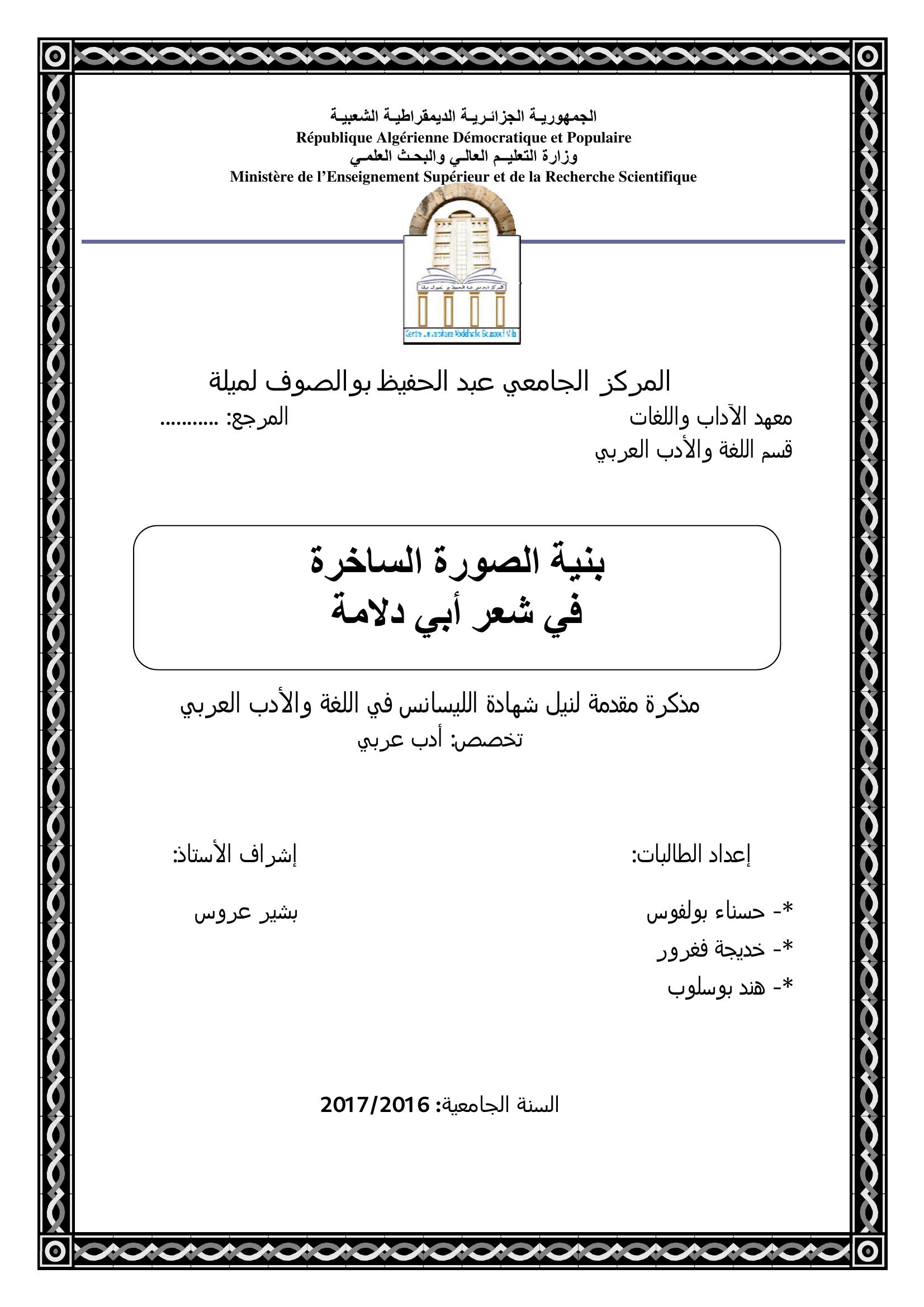 بولفوس حسناء et al. (2017). بنية الصورة الساخرة في شعر أبي دلامة.