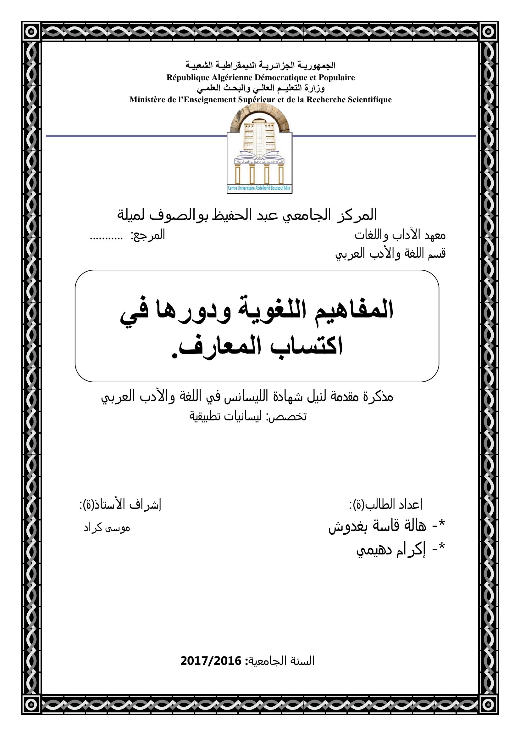 دهيمي إكرام et al. (2017). المفاهيم اللغوية ودورها في إكتساب المعارف قراءة في كتاب العلوم الطبيعية للسنة الثانية متوسط.
