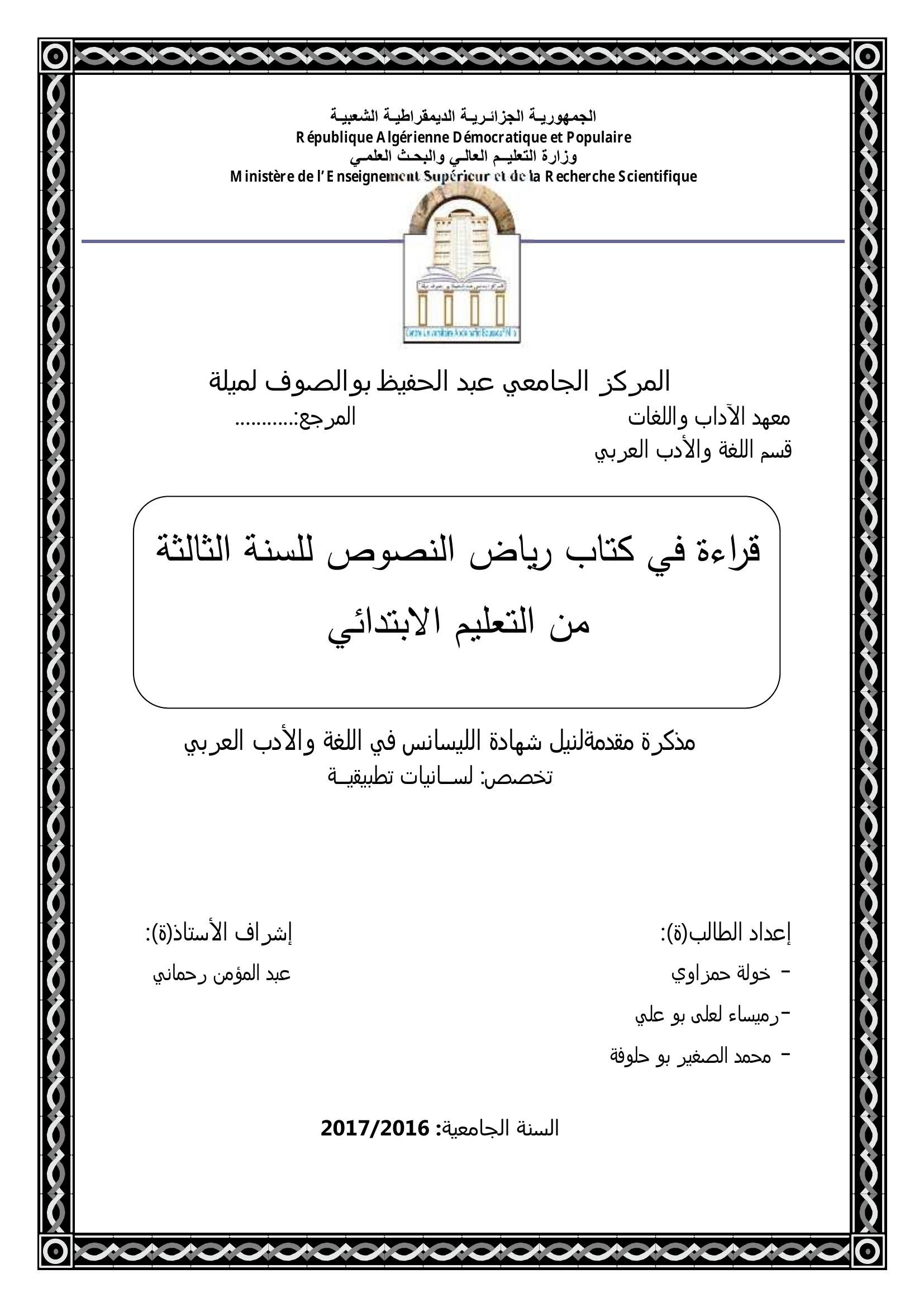 حمزاوي خولة et al. (2017). قراءة في كتاب رياض النصوص للسنة الثالثة من التعليم الإبتدائي.