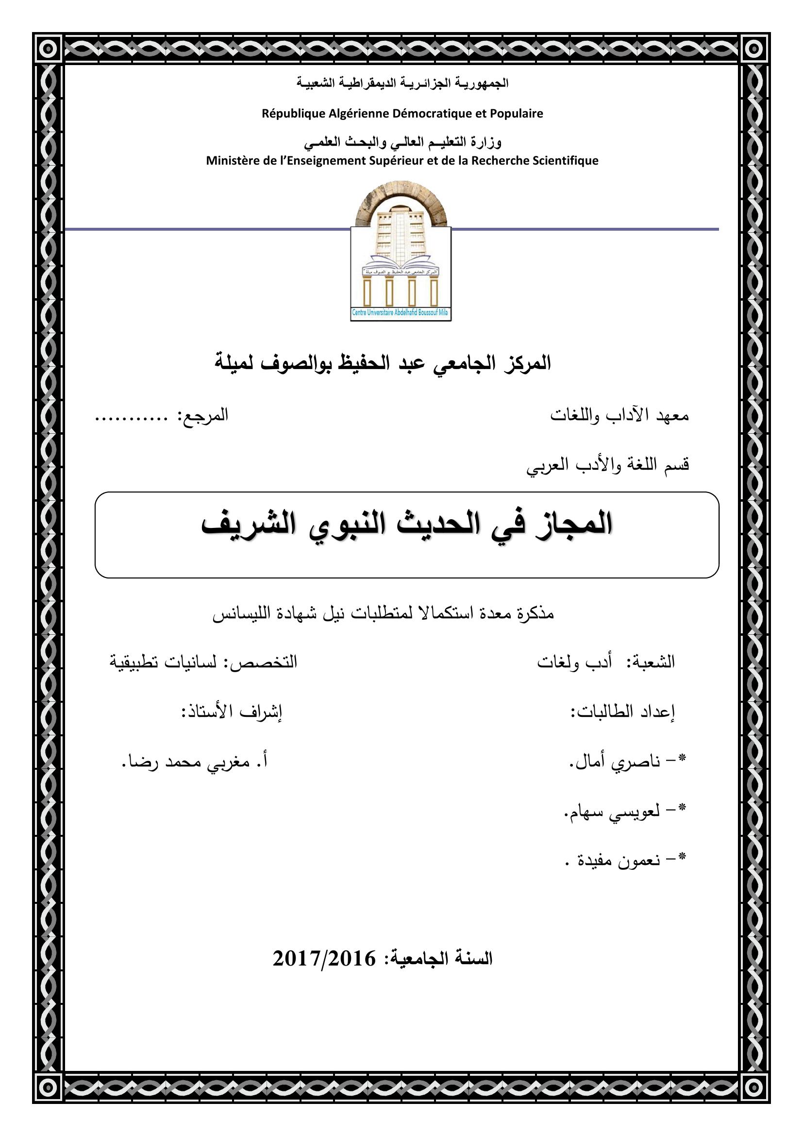 ناصري آمال et al. (2017). المجاز في الحديث النبوي الشريف.
