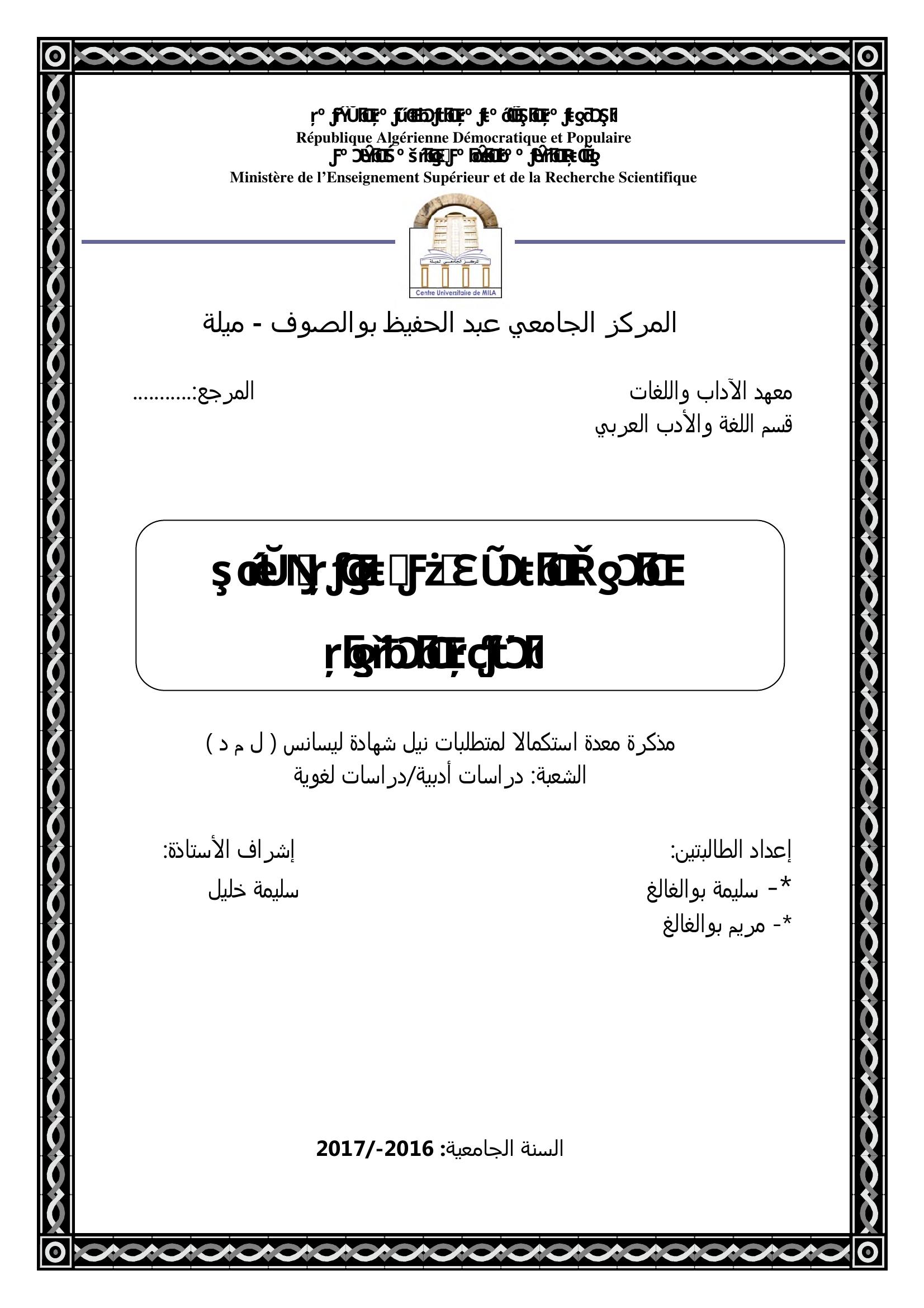 بوالغالغ سليمة et al. (2017). الموت الرمزي في رواية أشباح المدينة المقتولة.