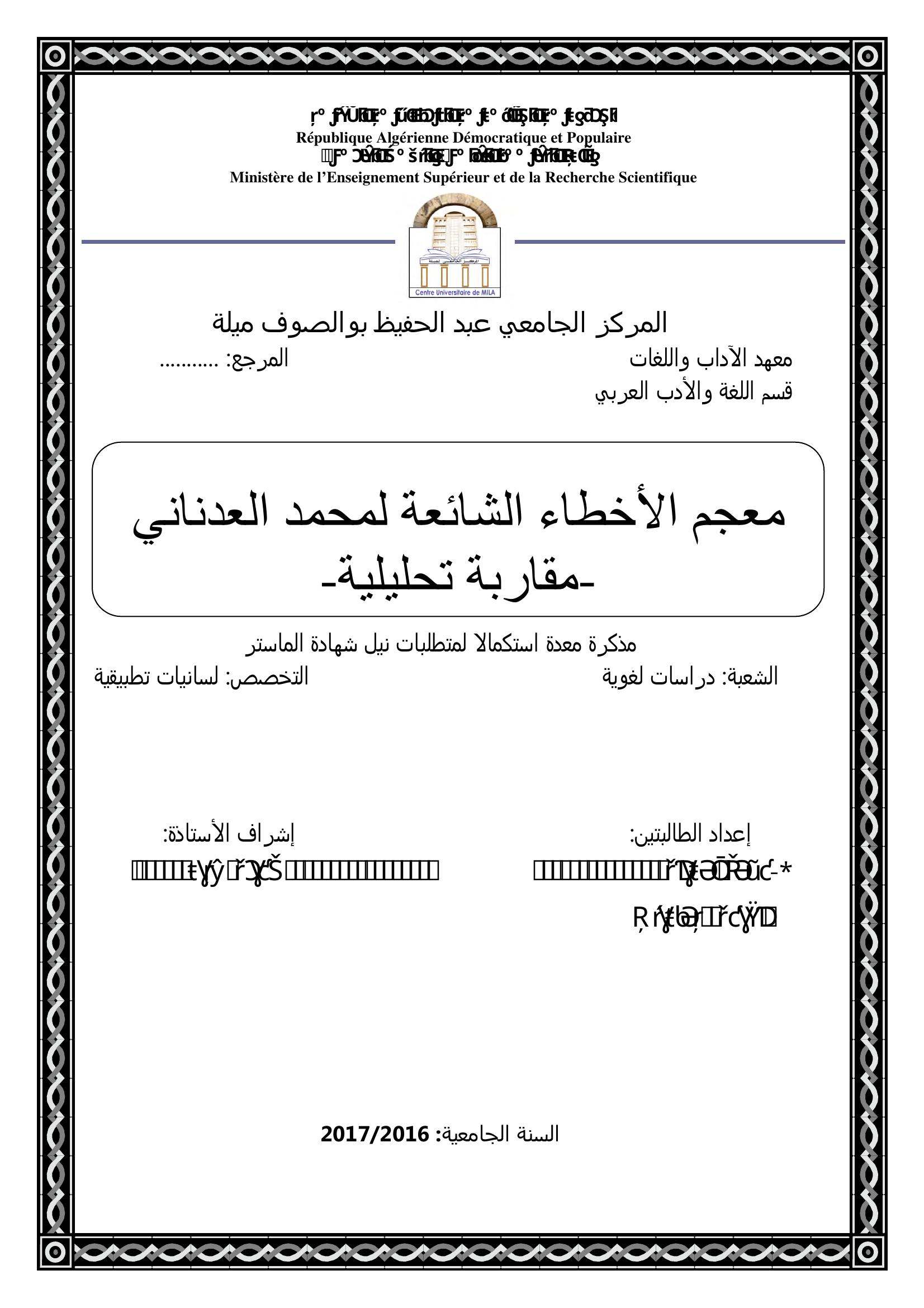 أودينة مريم et al. (2017). معجم الأخطاء الشائعة لمحمد العدناني مقاربة تحليلية.