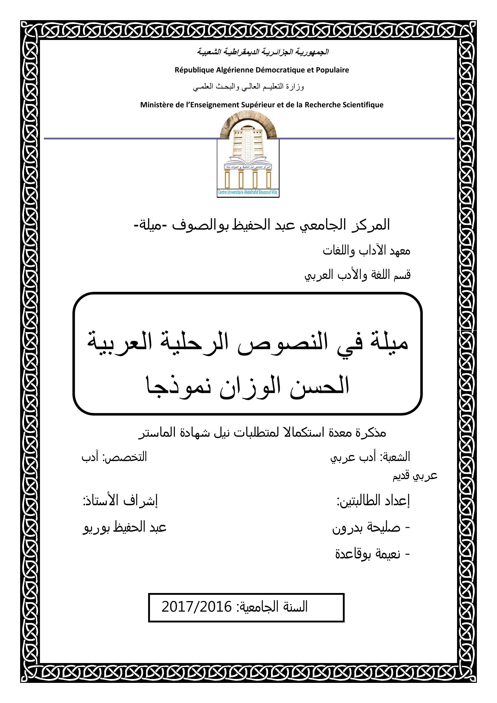 بدرون صليحة et al. (2017). ميلة في النصوص الرحلية العربية الحسن الوزان نموذجا.