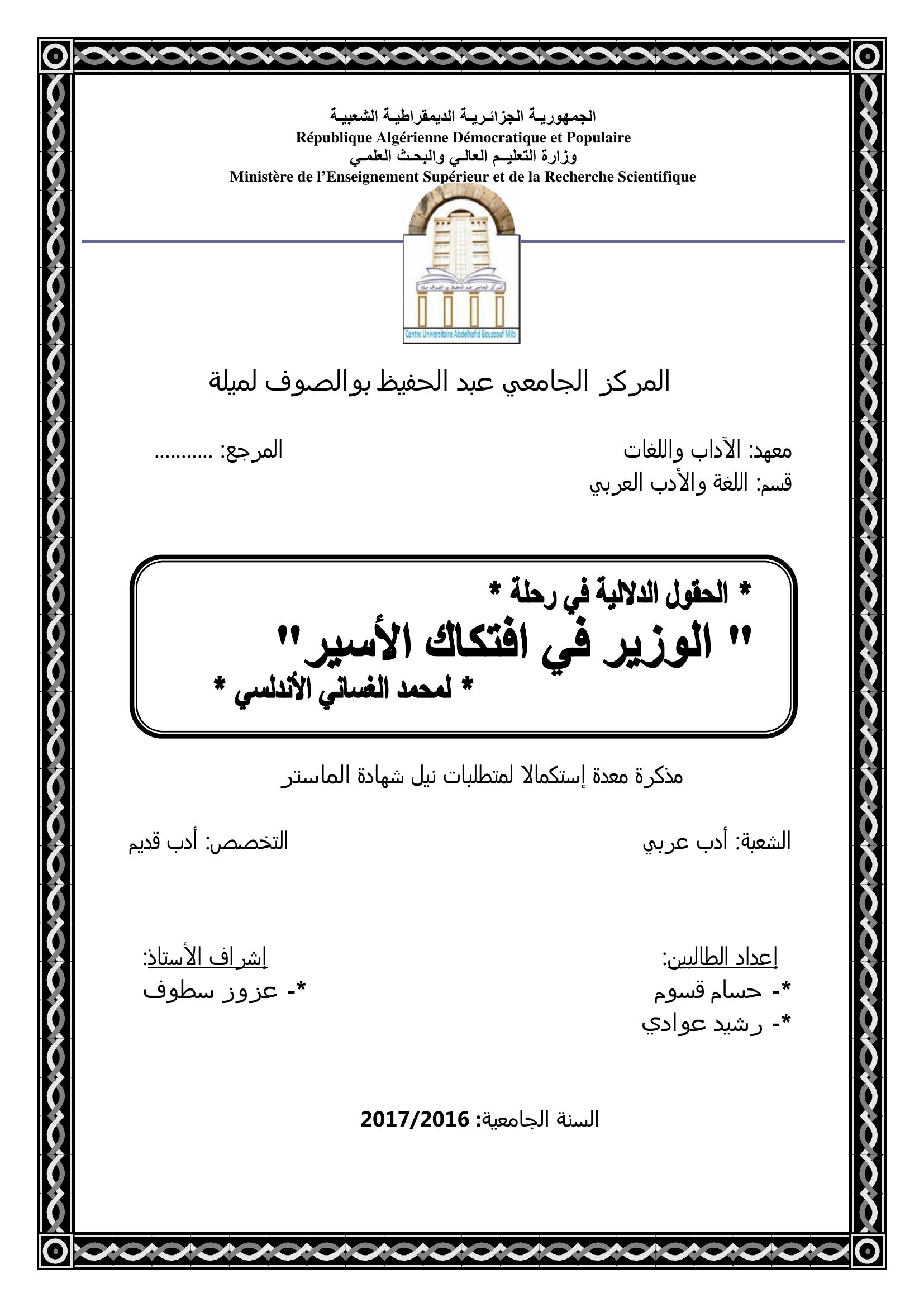 قسوم حسام et al. (2017). الحقول الدلالية في رحلة الوزير في إفتكاك الأسير لمحمد الغساني الأندلسي.