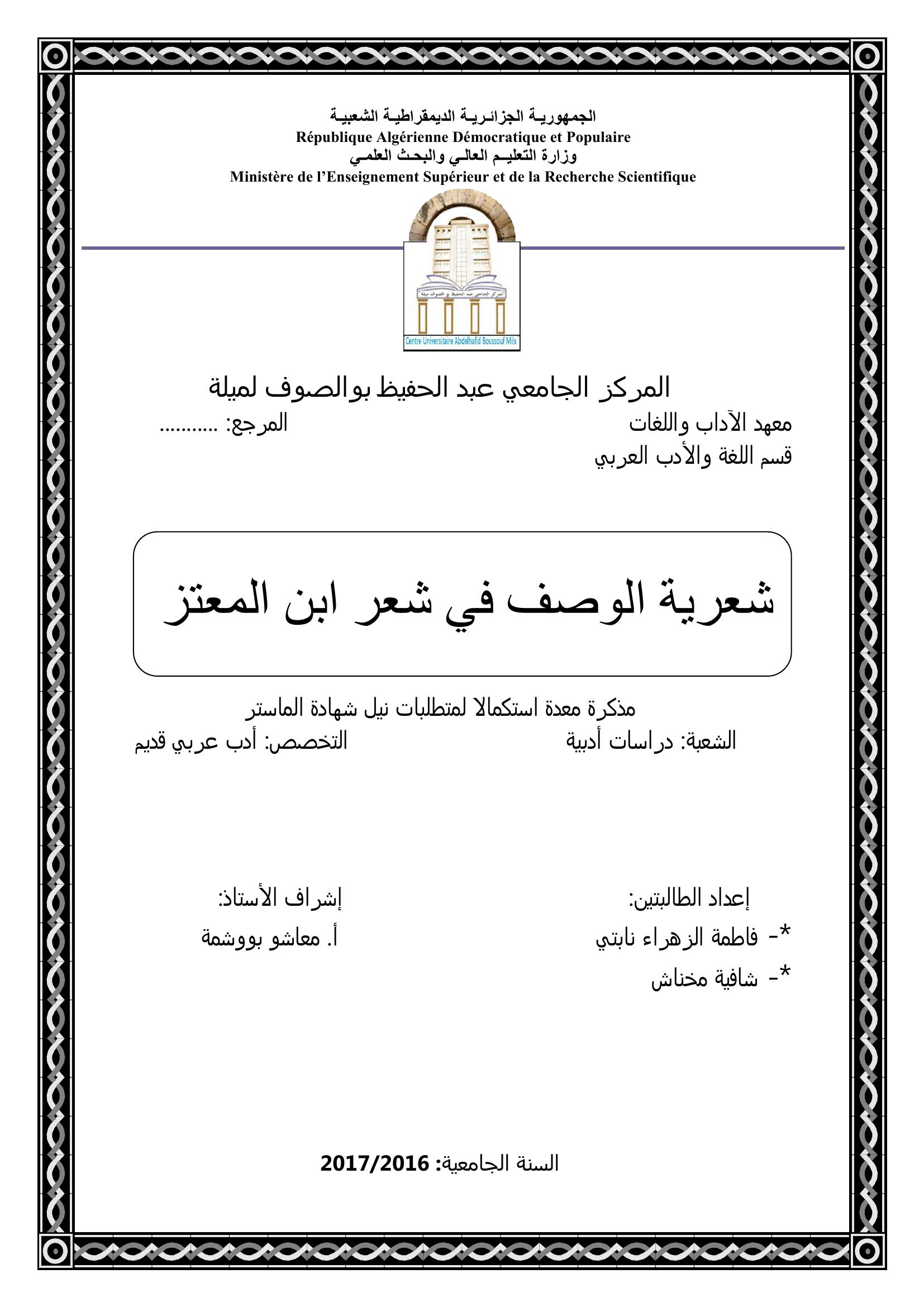 نابتي فاطمة الزهراء et al. (2017). شعرية الوصف في شعر ابن المعتز.