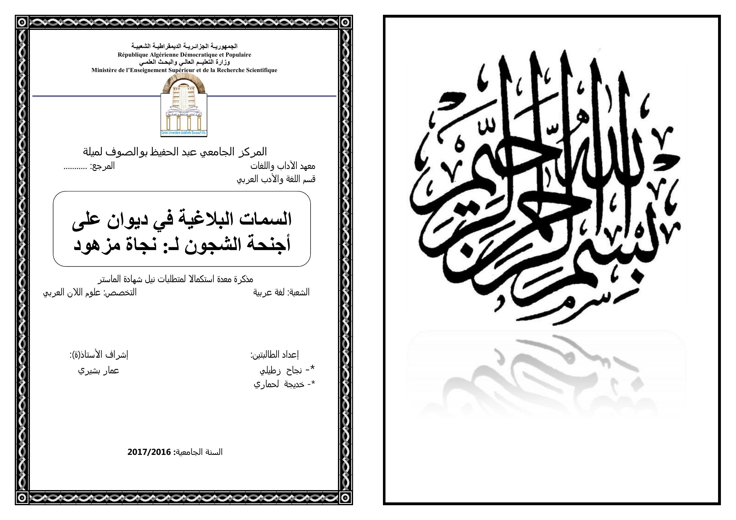 زطيلي نجاح et al. (2017). السمات البلاغية في ديوان على أجنحة الشجون لنجاة مزهود.